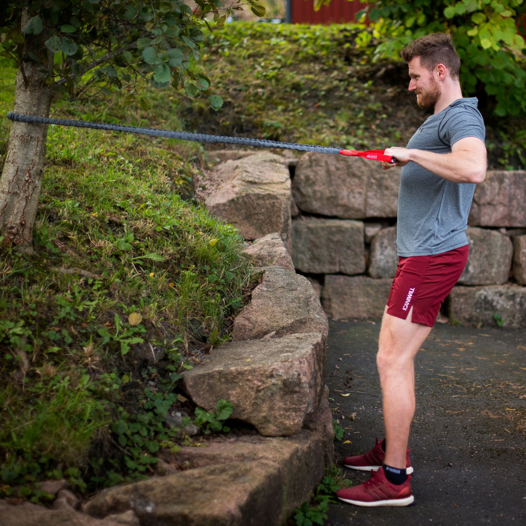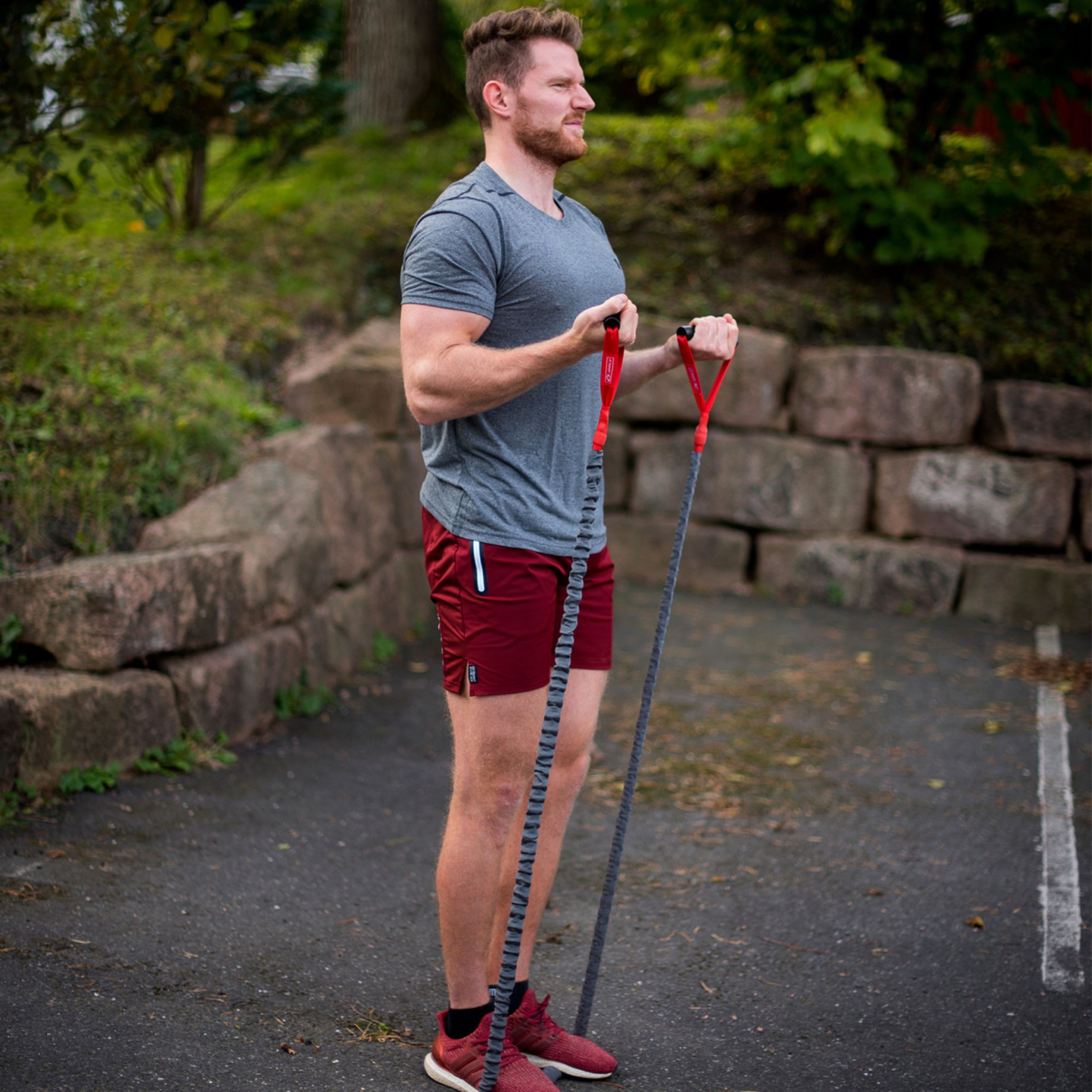 Placer Abilica Elastic Tube omkring et træ, et hegn eller under dine fødder for at få god modstand, når du træner overkroppen. Herfra kan du for eksempel holde dine arme i brysthøjden og trække albuerne lige tilbage i en stående bevægelse, for at træne ryggen. Du kan også stå med begge fødder på båndet, trække hænderne op til skuldrene for at skabe en modstand og derefter udføre knæbøjninger, der er lidt tungere end normalt.