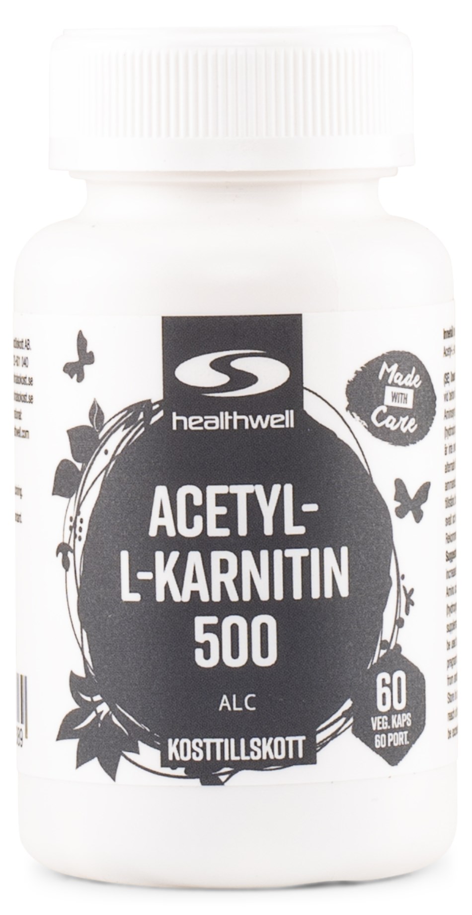 Healthwell Acetyl-L-Carnitin er et vegetabilsk kosttilskud med aminosyren Acetyl-L-carnitin, som er acetyleret form af aminosyren karnitin. Acetyl-L-carnitin har evnen til at let at krydse blod-hjerne-barrieren, hvilket gør det meget interessant når det kommer til hjernens ældning. Healthwell Acetyl-L-Carnitin indeholder 500 mg ALC per kapsel.