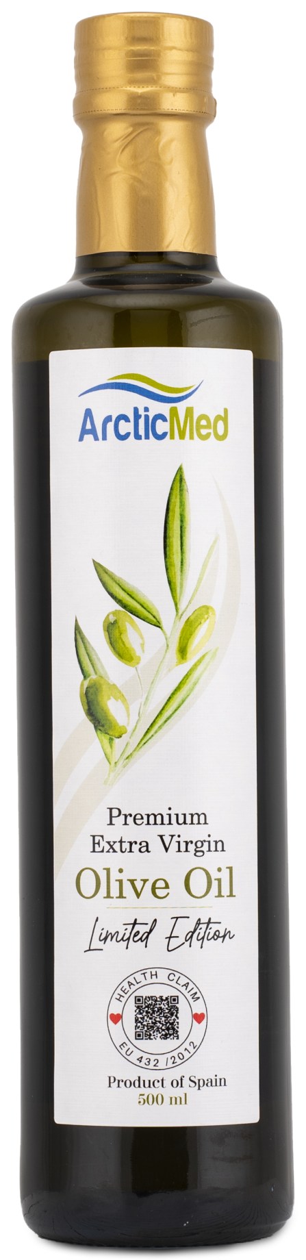 ArcticMed Extra Virgin Olivenolie er en spansk olivenolie, der er perfekt for dig, som søger en olie af allerhøjeste kvalitet! Olien er koldpresset og udvundet direkte fra oliven uden nogen mekaniske processer. Når det kommer til olivenolie, er det ønskværdigt, at dens indhold opnår et så lavt syreindhold som muligt – jo lavere værdi, desto bedre kvalitet. ArcticMed Extra Virgin Olivenolie har et syreindhold på 0,15, hvilket er langt under referenceværdien på 0,80.