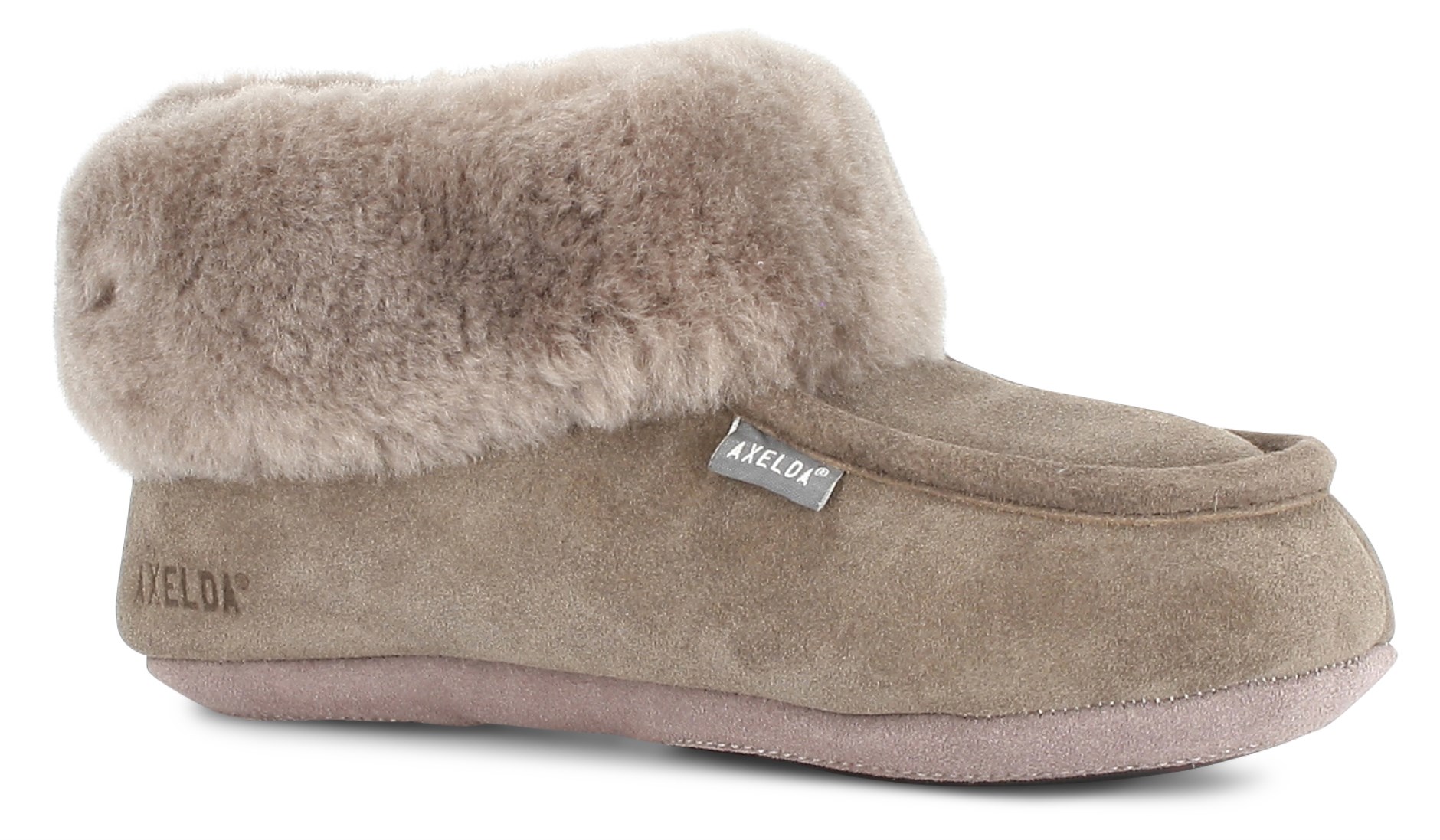 Axelda Slippers London Ladies er en fåreskindssko i klassisk model. Med skridsikker sål og rigtig god stabilitet og pasform, der holder længe. Hjemmeskoen er foret med fåreskindsfor og har et blødt skum i fodsengen, som gør den meget behagelig. Kraven kan foldes op.