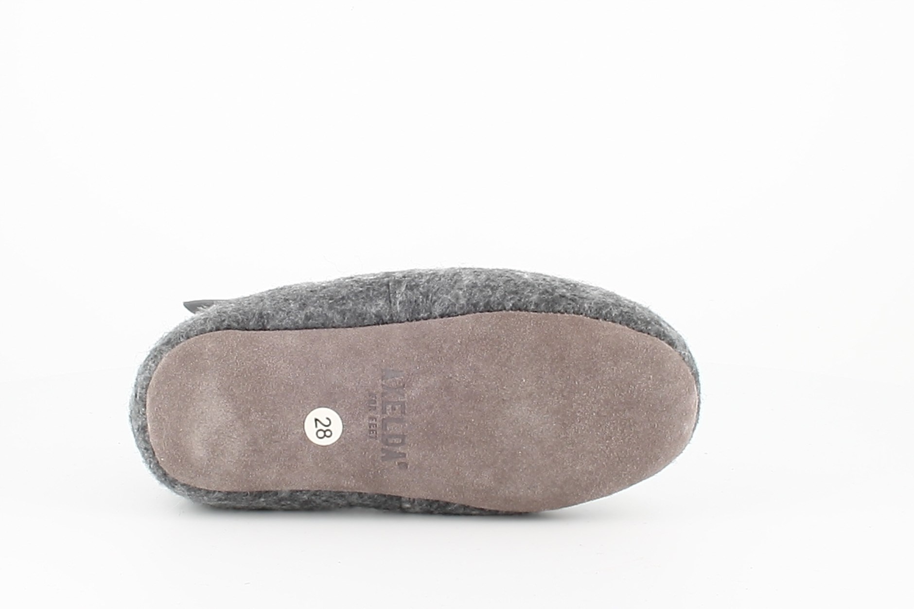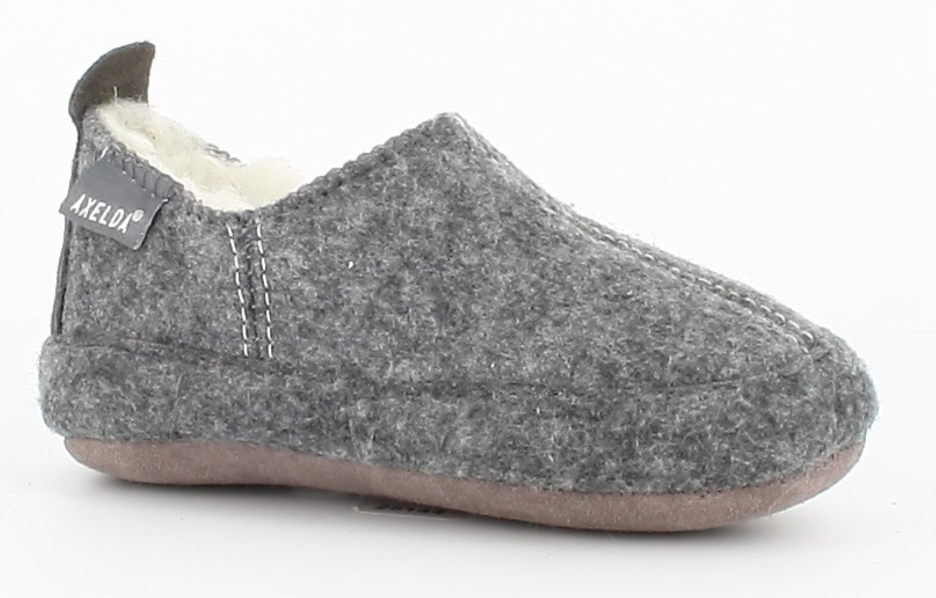Axelda Tøfler Belgrad Børn er et par robuste uldtøfler til børn. Med varmt uldfor indeni samt ydersål i ruskind. Oversiden er gråmeleret med hvide kontrastsyninger. Perfekte til kolde efterårsaftener og kølige vintermorgener!