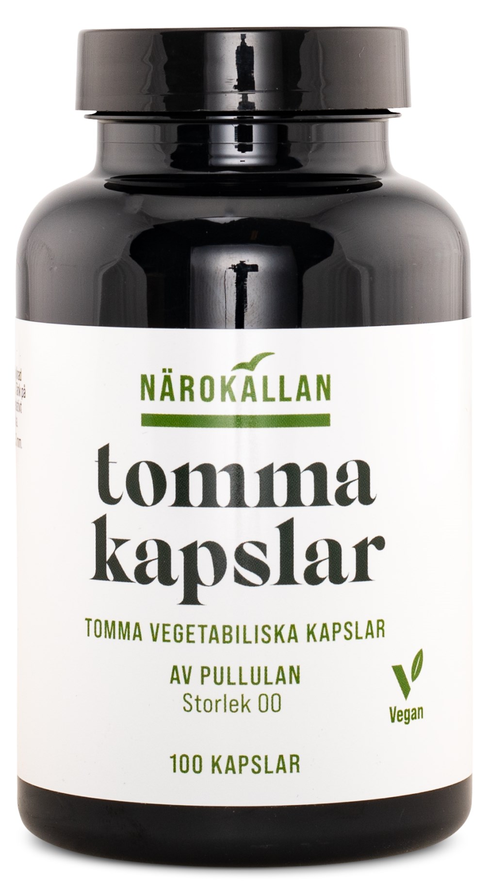 Närokällan Tomma Vegetabilske Kapsler giver dig mulighed for at fylde dine egne kapsler med pulver, væske eller olie, som du har svært ved at synke separat. Kapslerne er i størrelse 00 og holder op til 0,95 ml eller 700 mg. Husk ikke at fylde for mange på forhånd, da kapslerne opløses efter et stykke tid af væsken eller olien.