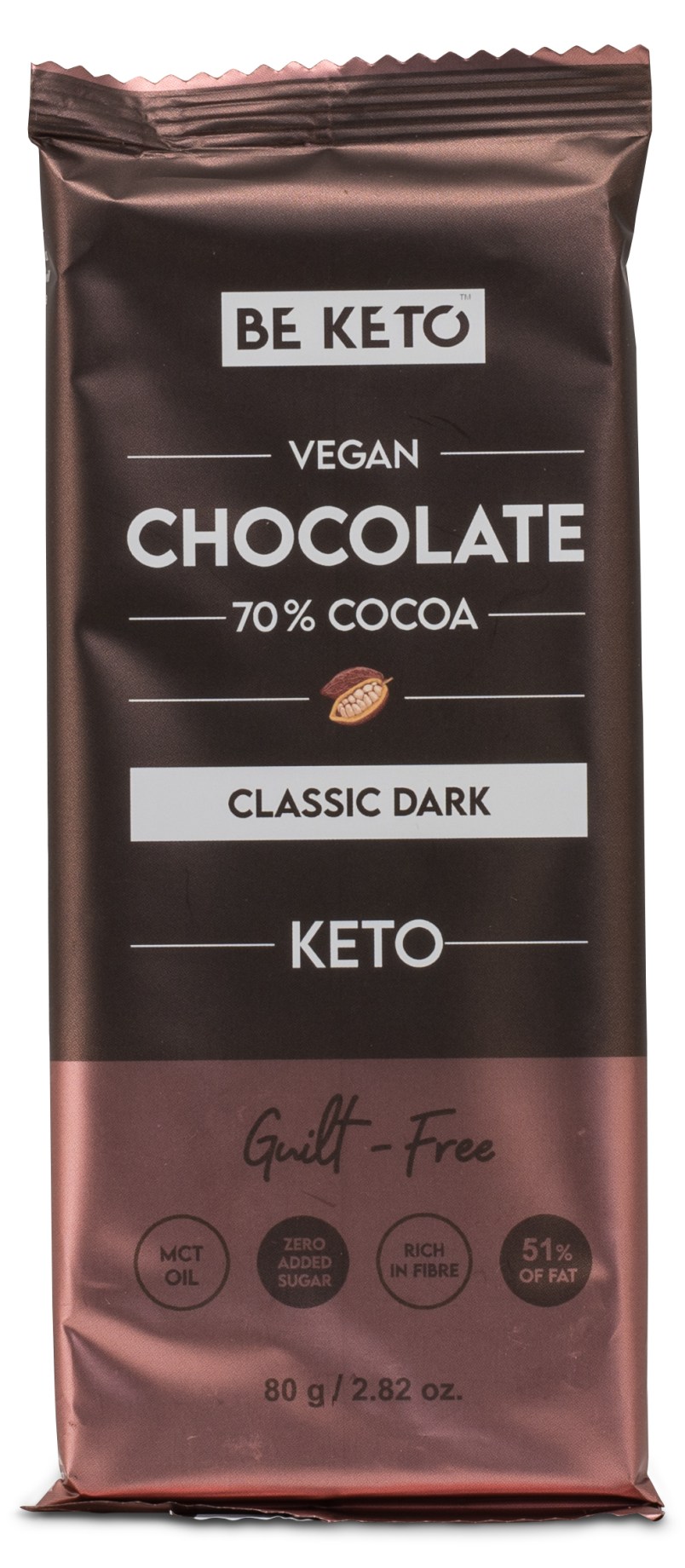 BeKeto KETO Chocolate er perfekt til dig, der følger en lavkulhydrat- eller ketogen livsstil! Med 100 % plantebaserede ingredienser og beriget med høj kvalitet MCT-olie, som fremmer ketonproduktion og bidrager til en stabil energiforsyning. Chokoladen findes i flere udsøgte smagsvarianter, der kombinerer nydelse og næring uden at gå på kompromis med dine sundhedsmål. Den er desuden vegansk og fri for sukker.