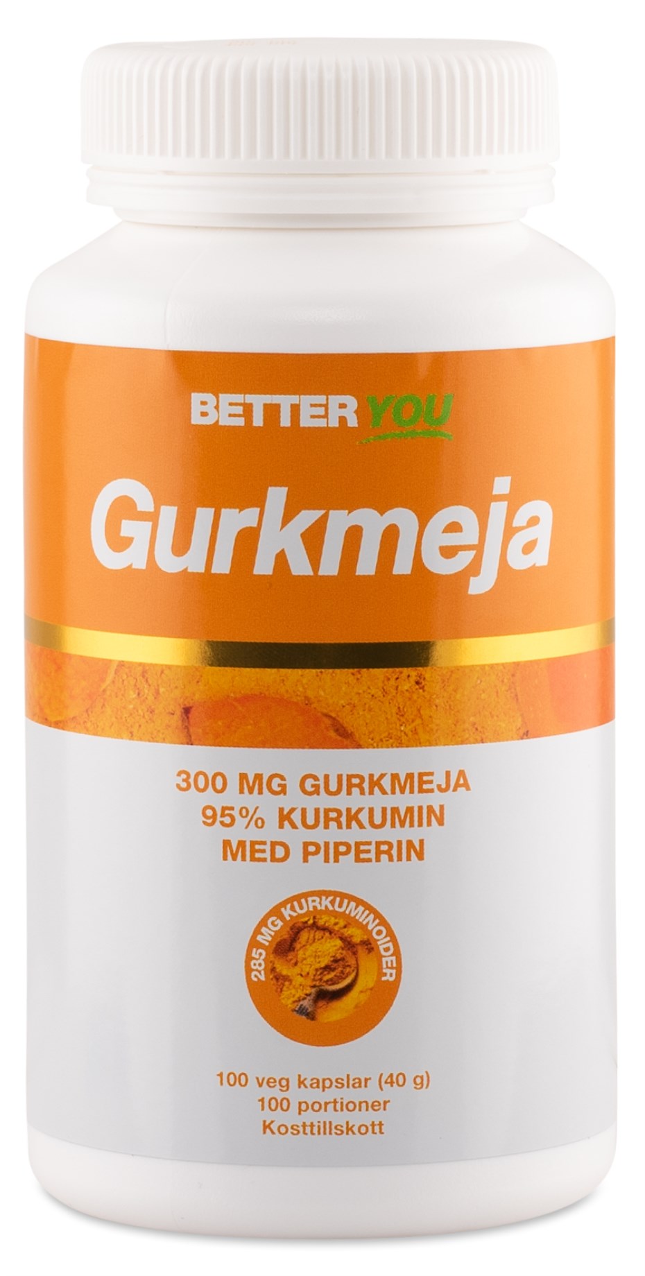 Better You Gurkemeje indeholder et højdoseret ekstrakt fra gurkemeje, med hele 95 % curcumin. Curcumin anses for at være det aktive stof i gurkemeje, og fungerer som antioxidanter, der modvirker oxidativ stress i kroppen. Better You Gurkemeje er et helt naturligt supplement med gurkemeje, med 100 % vegetabilske kapsler. Derudover er det forstærket med sort peber ekstrakt (Piper nigrum) for den bedste optagelsesevne.