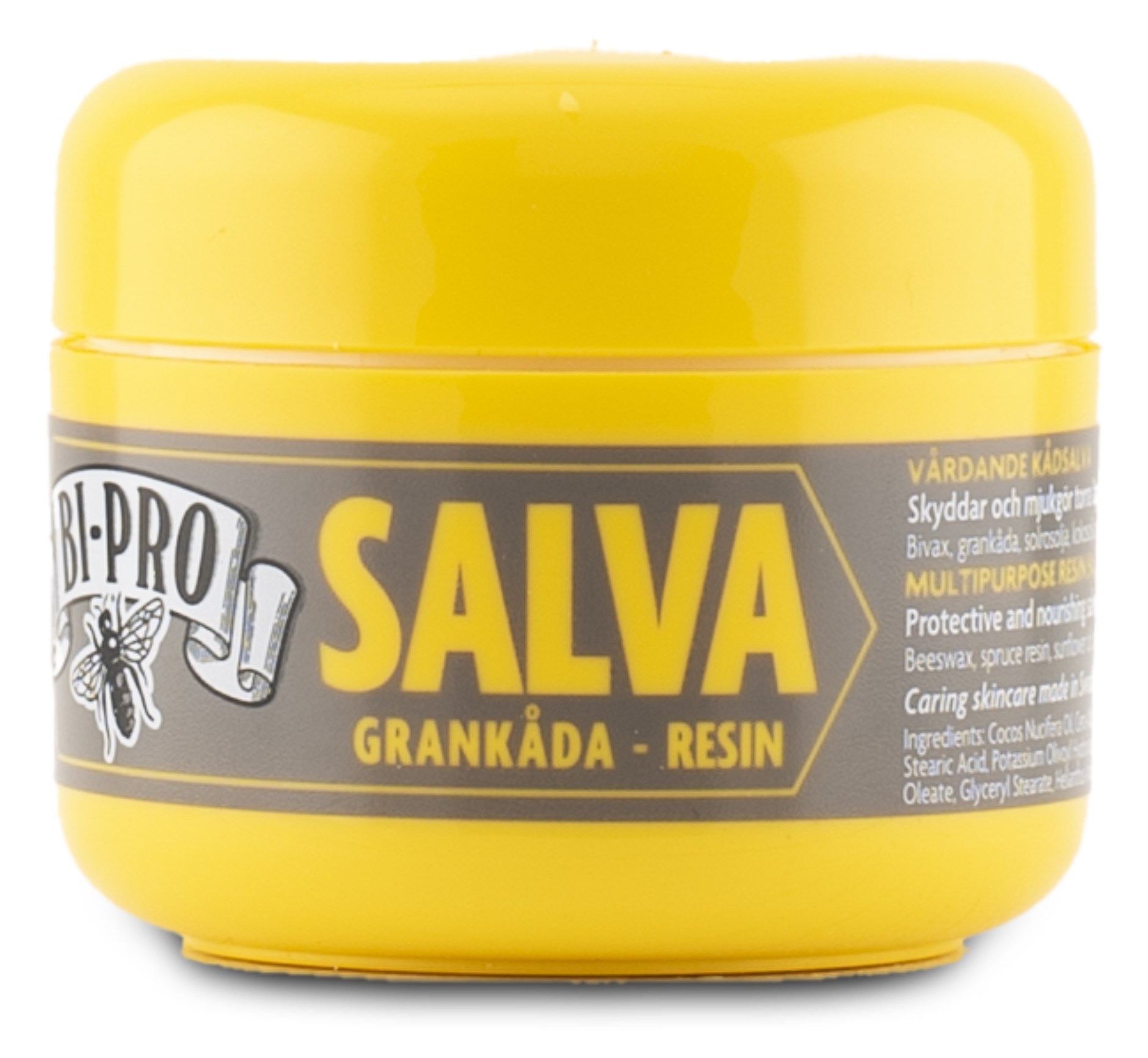 Bi-Salva Burk er en cremet salve mod meget tør hud og hård hud. Anvend på sprukne læber, tørre albuer, gnavesår og skællende hud. Bi-Pro Bi-Salva indeholder nogle af naturens mest næringsrige og plejende stoffer, som gennem historien er blevet brugt til forskellige hudproblemer. Bi-Salva indeholder en fantastisk blanding af bivoks med blødgørende og gavnlige egenskaber, sammen med granharpiks, som i naturen modvirker bakterier. Derudover indgår plejende solsikkeolie, kokosolie, ricinusolie og E-vitamin. Et svensk naturprodukt, helt enkelt!