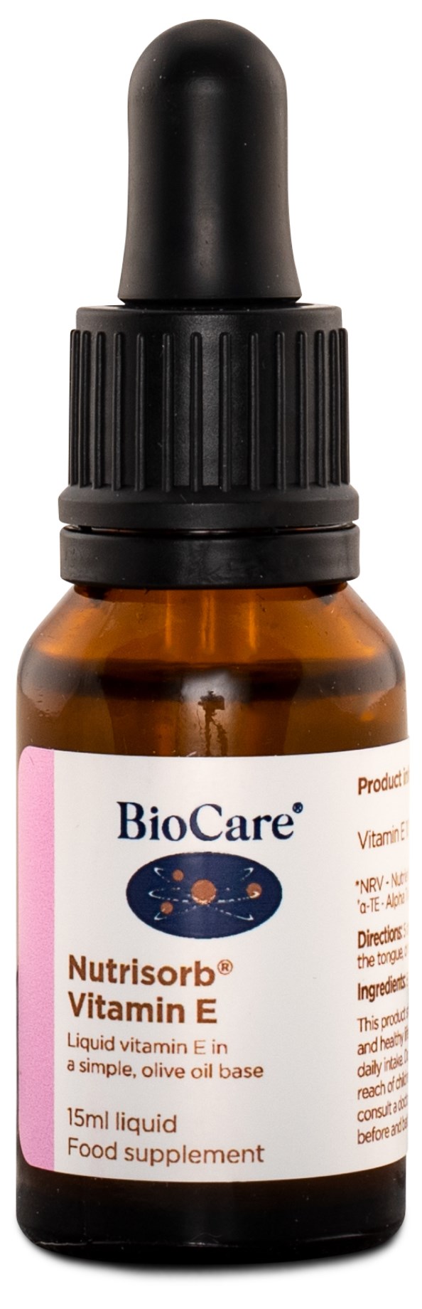 BioCare Nutrisorb E-vitamin er et flydende tilskud af E-vitamin i en base af olivenolie. Et nemt og bekvemt alternativ til kapsler og tabletter og til dem med fordøjelsesproblemer! Kosttilskuddet indeholder 100 IE af E-vitamin pr. 5 dråber og kan let blandes i en hvilken som helst drik, men kan også tages direkte under tungen. E-vitamin er en antioxidant, der hjælper med at beskytte cellerne mod oxidativt stress. Velegnet til veganere og vegetarer!