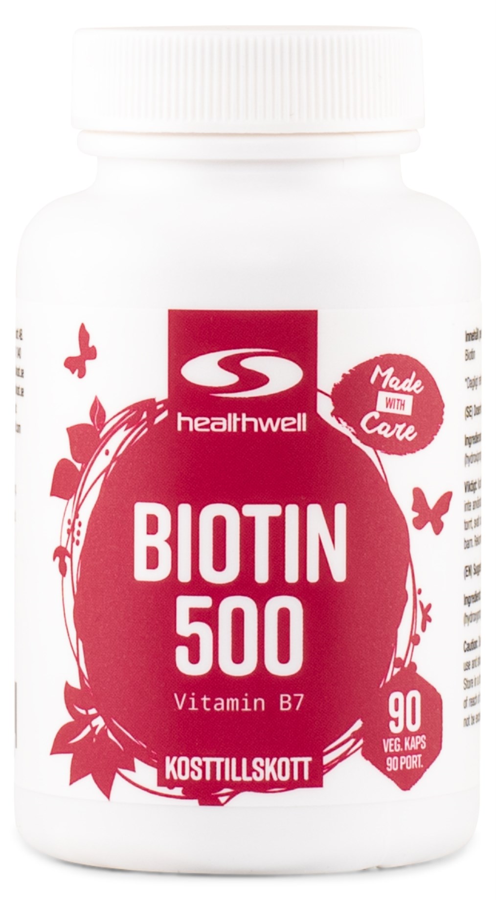 Healthwell Biotin 500 er et kvalitets kosttilskud med biotin (vitamin B7). Biotin er et vitamin, der hjælper med at bevare hårets og hudens normale kvalitet, og derfor er det en meget almindelig ingrediens i forskellige skønhedstilskud, der specifikt er tilpasset til netop hud og hår. Udover dette bidrager biotin også til en fungerende energiomsætning i kroppen. Biotin 500 fra Healthwell er et vegansk kosttilskud med 500 mikrogram biotin pr. kapsel.
