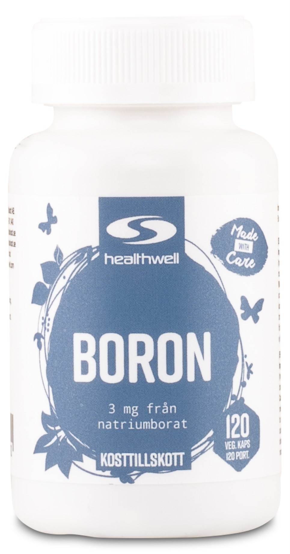 Healthwell Boron er et kosttilskud med mineralet bor i form af natriumborat, en form der har høj biotilgængelighed og let optages af kroppen. Bor findes naturligt i knoglerne og samarbejder med blandt andet D-vitamin, som fremmer omsætningen af calcium. Healthwell Bor indeholder 3 mg bor per kapsel i vegetabilske kapsler.