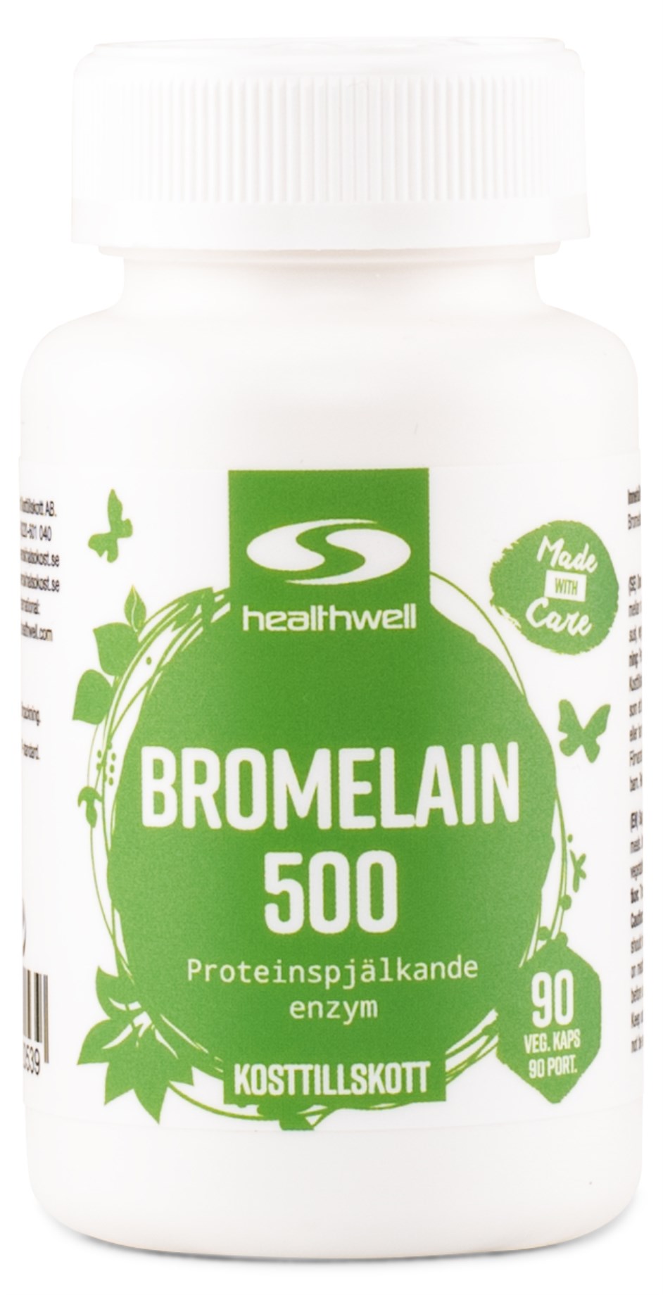 Bromelain 500 fra Healthwell er ekstra stærke enzymkapsler med enzym fra ananas. Enzymer hjælper med fordøjelsesprocessen ved at nedbryde maden, vi spiser, til mindre bestanddele. En kapsel indeholder 500 GDU bromelain.