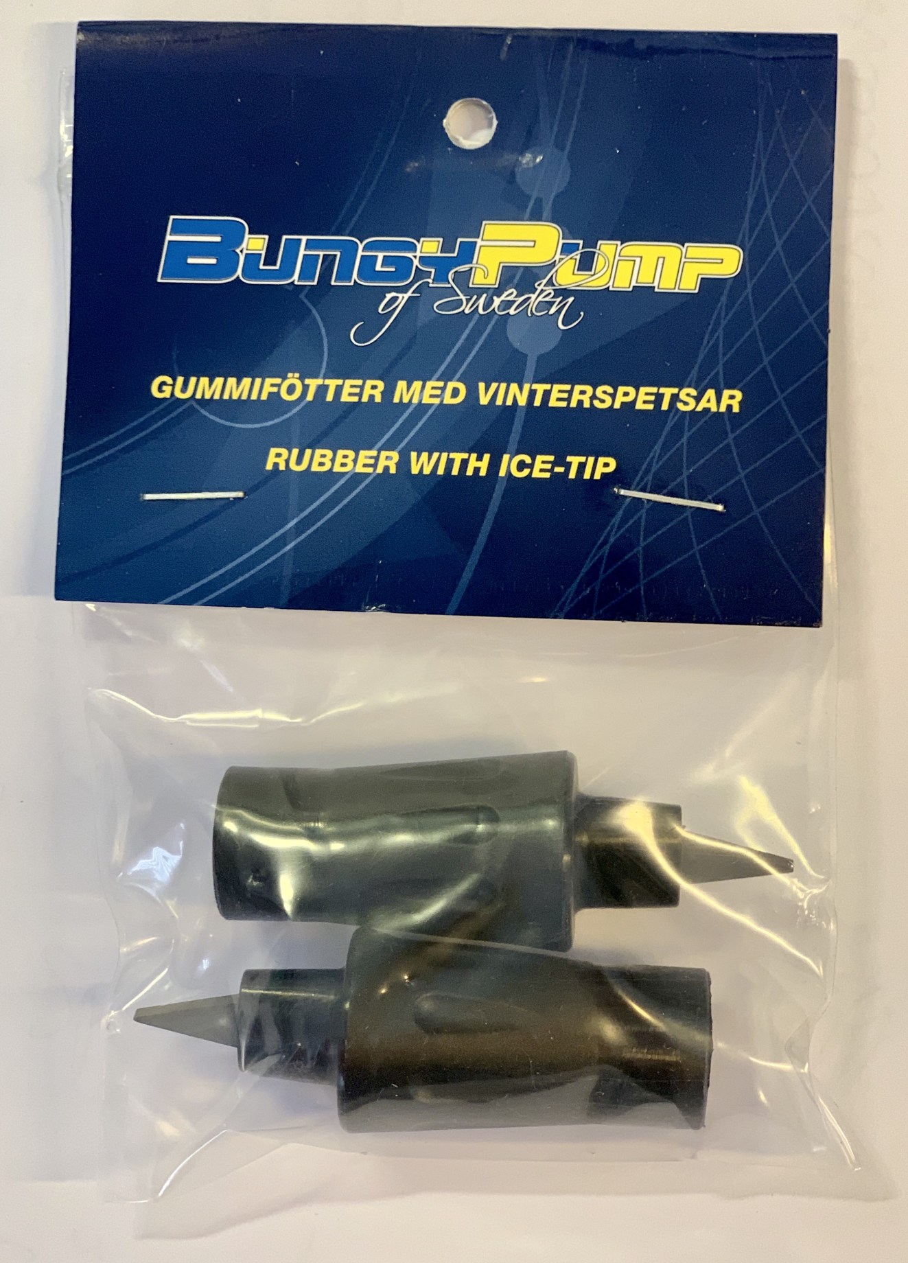 Gummifødder med isdup til BungyPump vandrestave – fremragende til powerwalks om vinteren i glat føre. Vinterfødderne giver et fast greb i isen, så du kan få et perfekt stavtag selv på glat underlag. BungyPump Ispigge sælges i par og passer til alle modeller af vandrestave fra BungyPump. Nem montering og udskiftning.