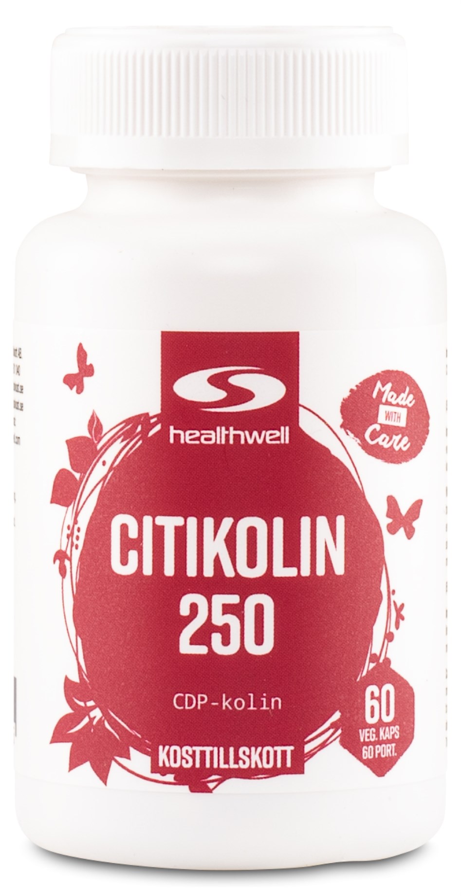 Healthwell Citikolin 250 er kapsler med det særlige stof citikolin. Citikolin kaldes også CDP-cholin og består af cholin og cytidin sammen. Cholin bidrager blandet andet til normal leverfunktion og normal homocysteinmetabolisme. Citikolin 250 fra Healthwell indeholder hele 250 mg CDP-cholin per kapsel.