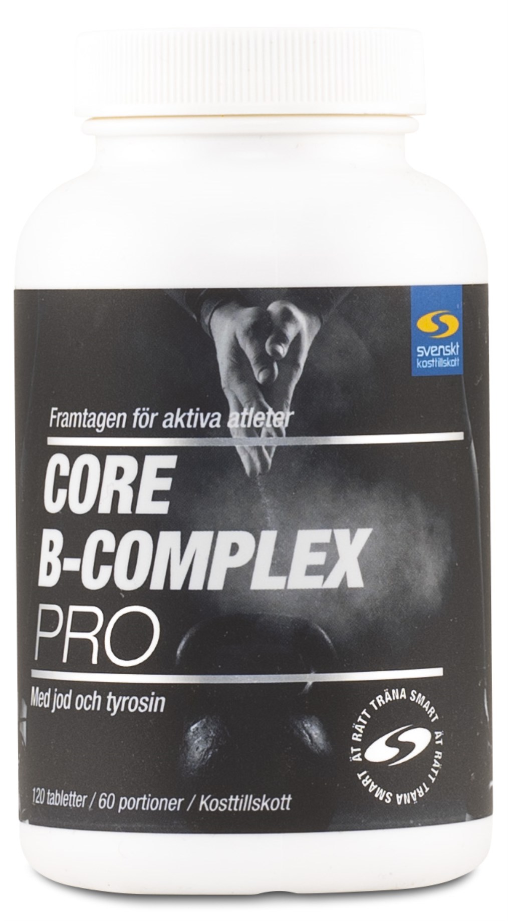 Core B-Complex Pro er et B-kompleks med alle B-vitaminer i samme kapsel, tilpasset dig, der træner og vil fylde op med ekstra B-vitaminer. Produktet er forstærket med jod og tyrosin, som begge bidrager til en normal skjoldbruskkirtelfunktion. Den anbefalede dosering er 2 tabletter om dagen.