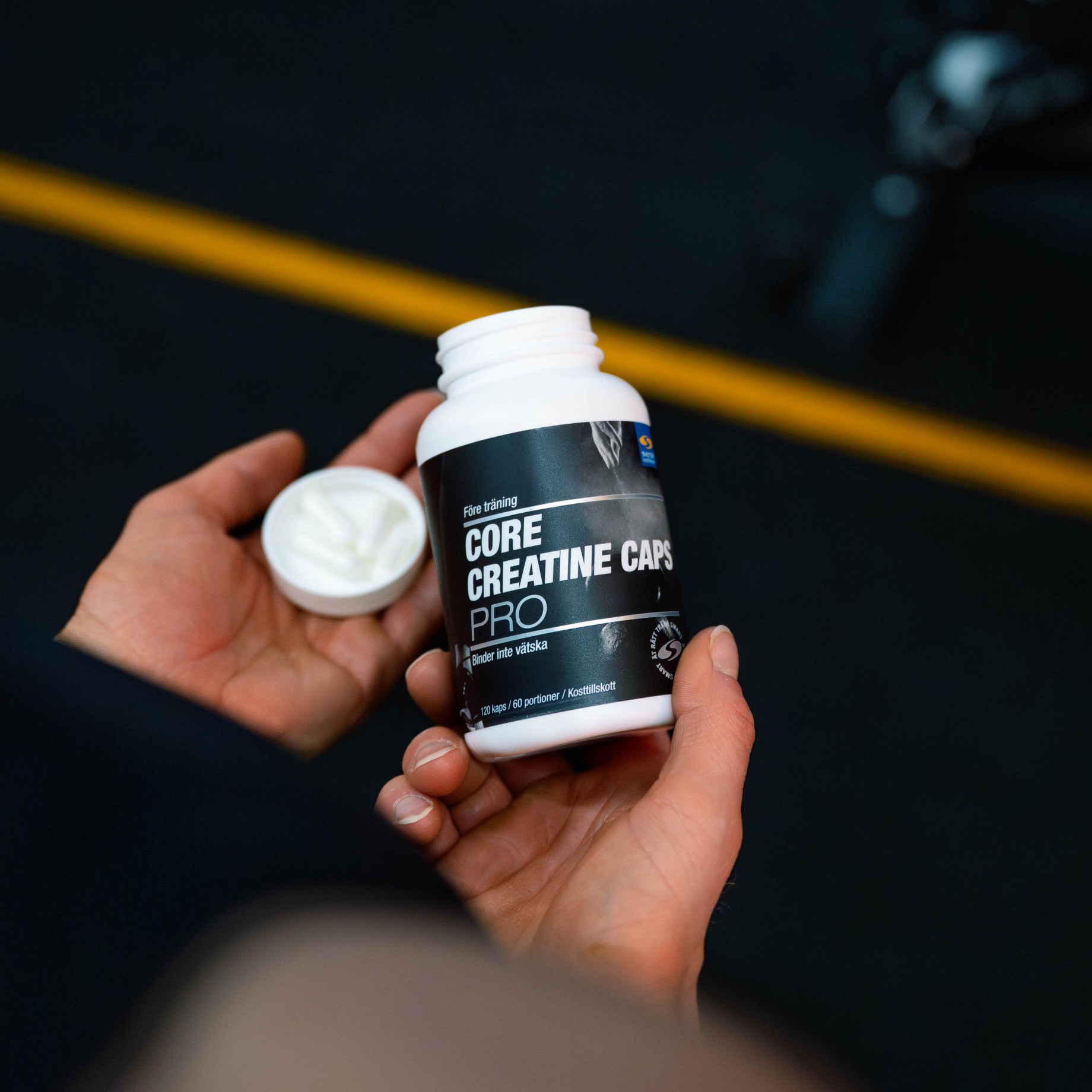 Core Creatine Caps Pro indeholder CreaPro Creatine, hvilket er en form af bufferet kreatinmonohydrat. Der findes forskellige typer af kreatintilskud, der kan variere en smule, men kreatinmolekylet i sig selv er altid det samme. Det, der adskiller dem, er stoffet, som kreatinet er bundet til. I Core Creatine Caps Pro anvender vi en bufferet form af kreatin, hvilket betyder, at pH-værdien er meget højere og gør den mere modstandsdygtig over for mavesyren. Dette resulterer i, at en større mængde kreatin kan blive optaget af kroppen, og en mindre dosis er nødvendig. Derudover er den lavere dosering mere skånsom for maven. En anden fordel er, at kreatinet i Core Creatine Caps Pro ikke fører til væskeretention, hvilket ofte er en uønsket effekt af kreatintilskud.