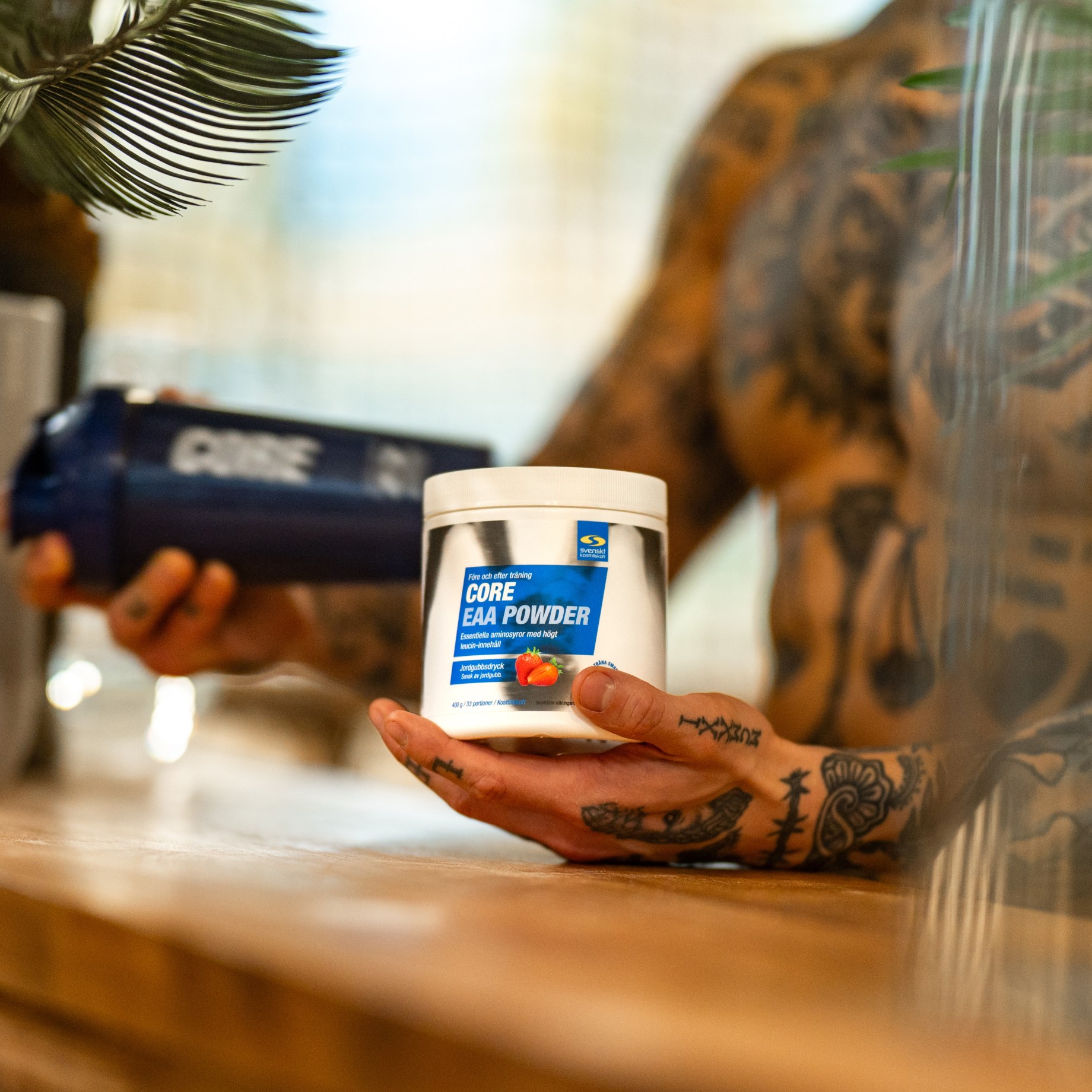 Core EAA Powder er et kosttilskud med essentielle aminosyrer, som hjælper med at bevare eksisterende muskelmasse og opbygge ny muskelmasse. Et uundværligt grundtilskud for dig, der træner hårdt. Core EAA er forstærket med L-glycin, som stimulerer udskillelsen af kvælstof, samt vitamin B6, der fungerer som en transportør af aminosyrerne og deltager i proteinomsætningen.