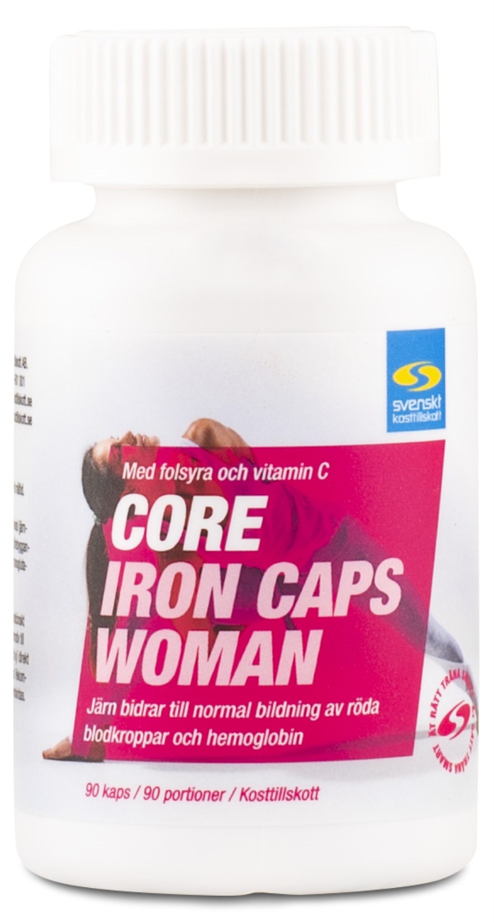 Næringsstoffet jern er vigtigt for en række funktioner i kroppen, og jern er også et af de få stoffer, som kroppen har en lav optagelse af. Core Iron Caps Woman indeholder dagsdosis af jern, sammen med C vitamin, som øger jernoptagelsen, samt folsyre, som bidrager til normal bloddannelse. Hovedopgaverne for jern er at bidrage til dannelsen af røde blodlegemer og hæmoglobin, som transporterer ilt rundt i kroppen. Jern er også vigtigt for et velfungerende immunforsvar, for produktionen af dopamin, som påvirker både muskler og humør, samt for at opretholde normale energiniveauer, så du ikke føler dig unormalt træt eller udmattet.