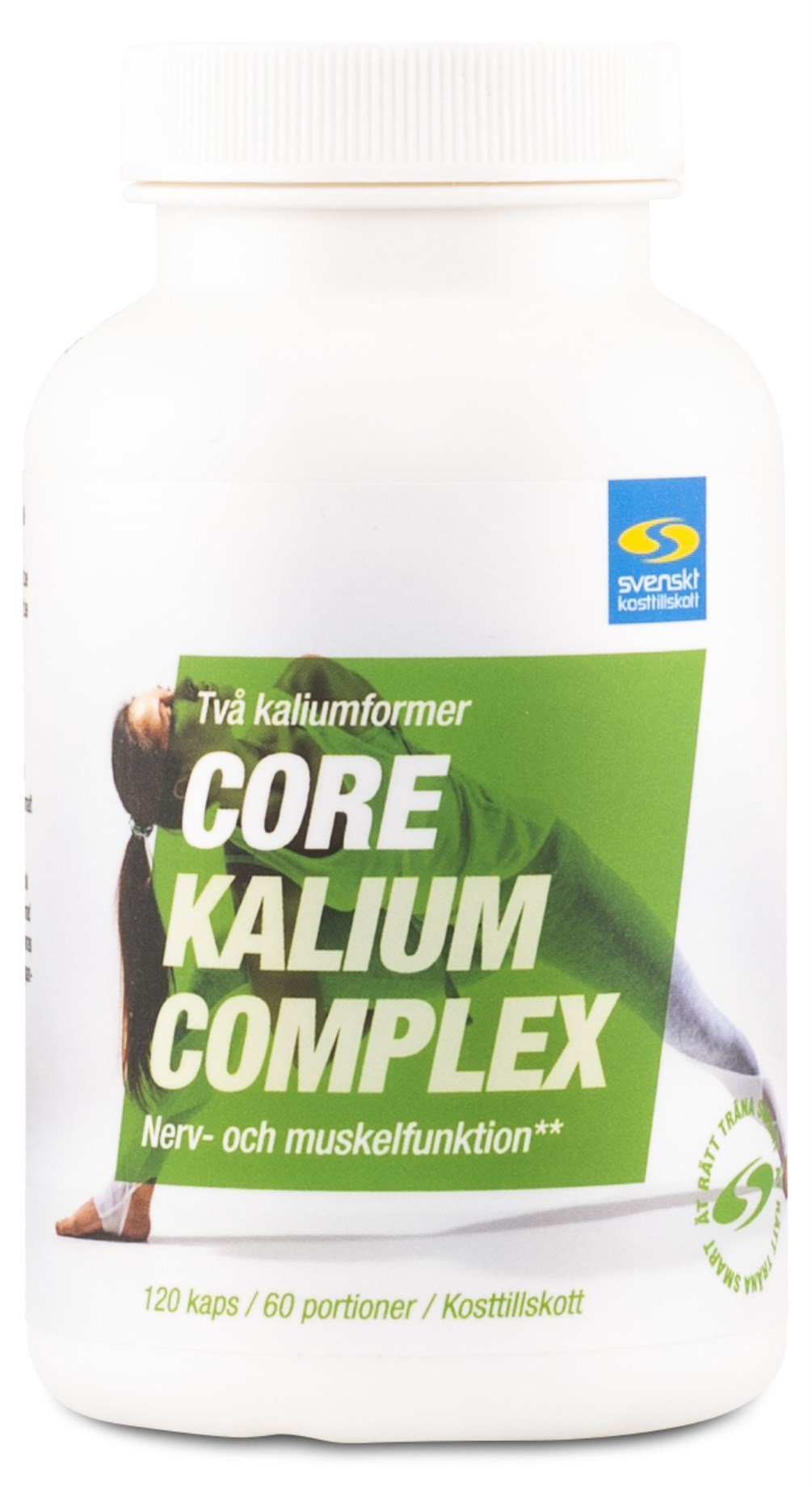 Core Kalium Complex er et høj-kvalitets kosttilskud med mineralet kalium fra to forskellige kilder. Core Kalium Complex indeholder en kombination af kaliumcitrat og kaliummalat, som begge har en høj biotilgængelighed. Den anbefalede dosis er 2 kapsler om dagen, hvilket giver en elementær kaliummængde på 500 milligram.