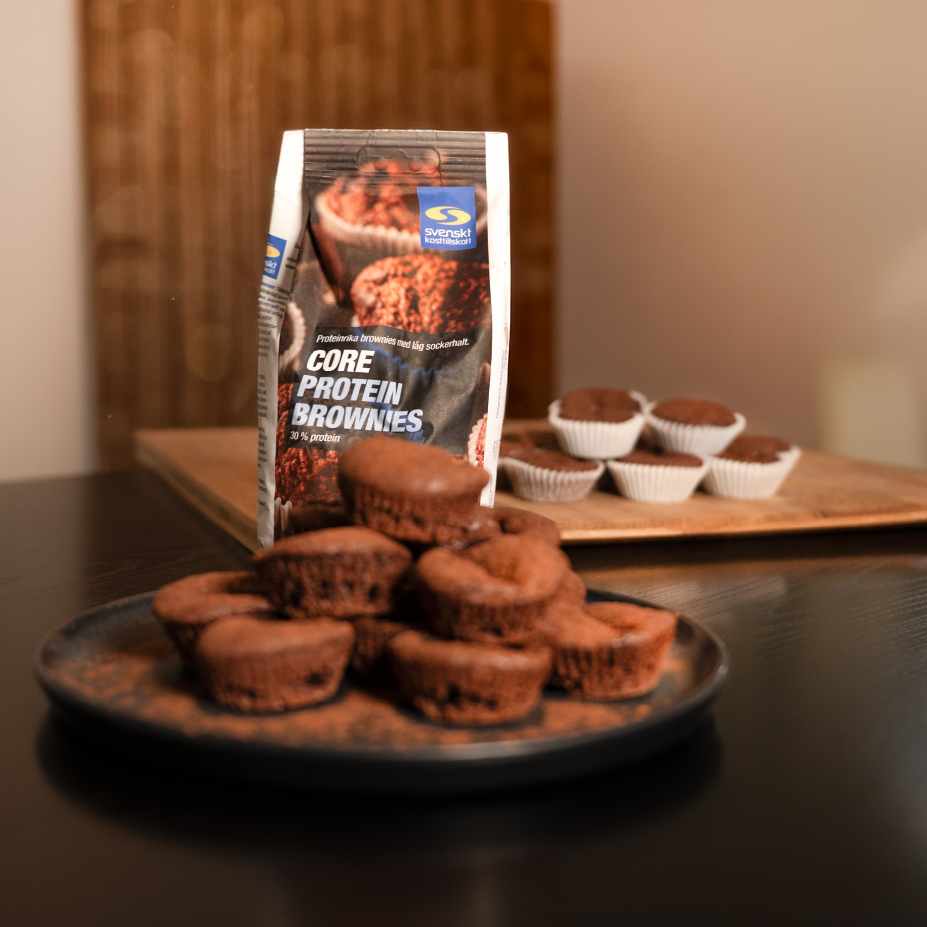 Nyd en lækker og proteinrig kaffepause med Core Protein Brownies – en færdig bageblanding, der blot skal røres op med vand. Perfekt til dig, der vil forkæle dig selv med noget godt og samtidig tænke over indholdet. Med Core Protein Brownies får du en brownie med højt proteinindhold og færre kalorier end den klassiske udgave. Og det er nemt at lykkes hver gang!