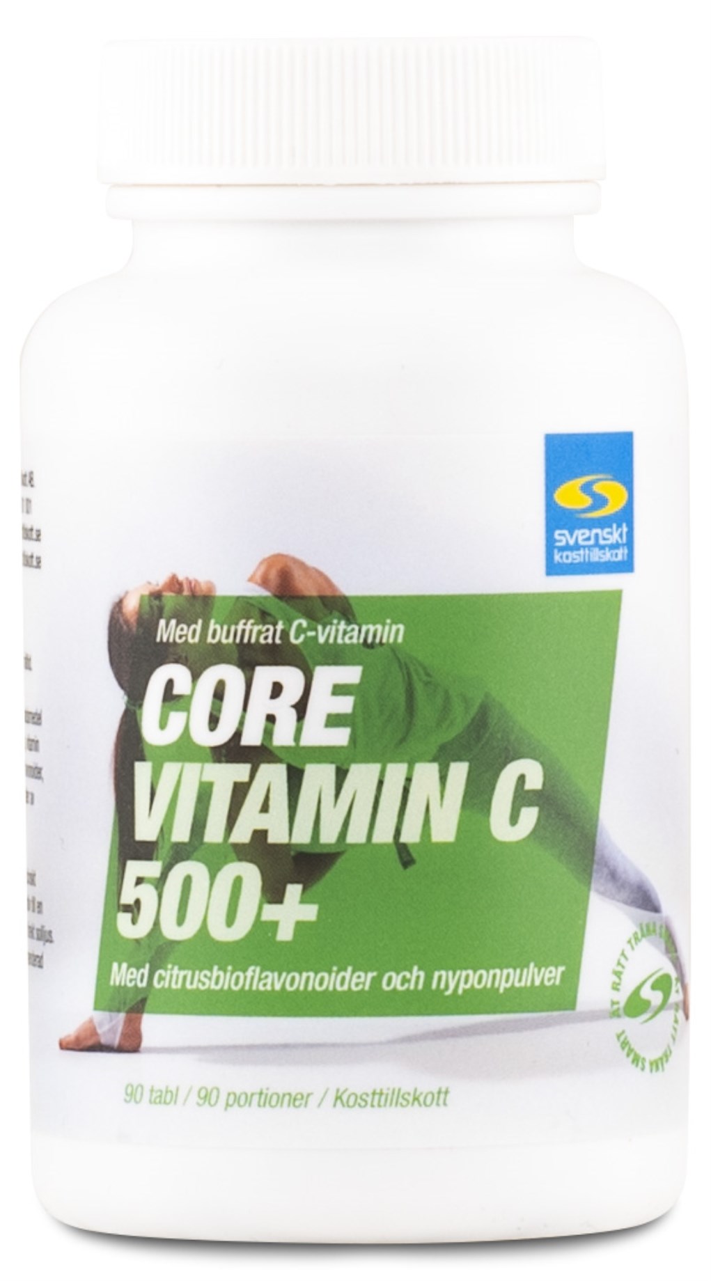 Core Vitamin C 500+ kombinerer to former for C-vitamin; den traditionelle askorbinsyre og den pH-neutrale calciumaskorbat. Dette giver fordele såsom reduceret belastning på maven samt en længere halveringstid i kroppen. For at styrke produktet yderligere har vi tilsat citrusbioflavonoider og hybenpulver.