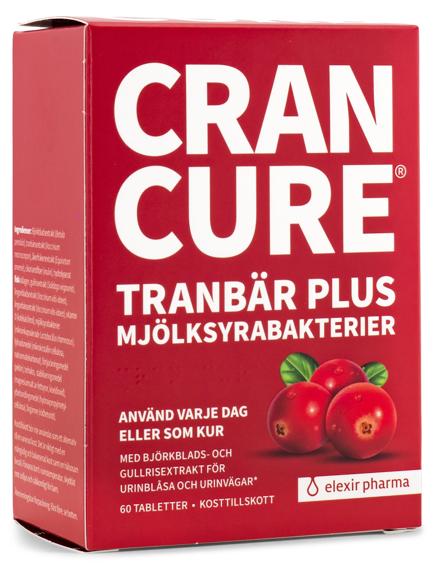Cran Cure er en unik kur, som indeholder økologisk tranebær- og tyttebærekstrakt forstærket med ekstrakt af agerpadderok og gyldenris, D3-vitamin og 2 milliarder mælkesyrebakterier. Tranebær- og tyttebærekstrakt indeholder proantocyaner, som er en del af det røde farvestof i bærrene.