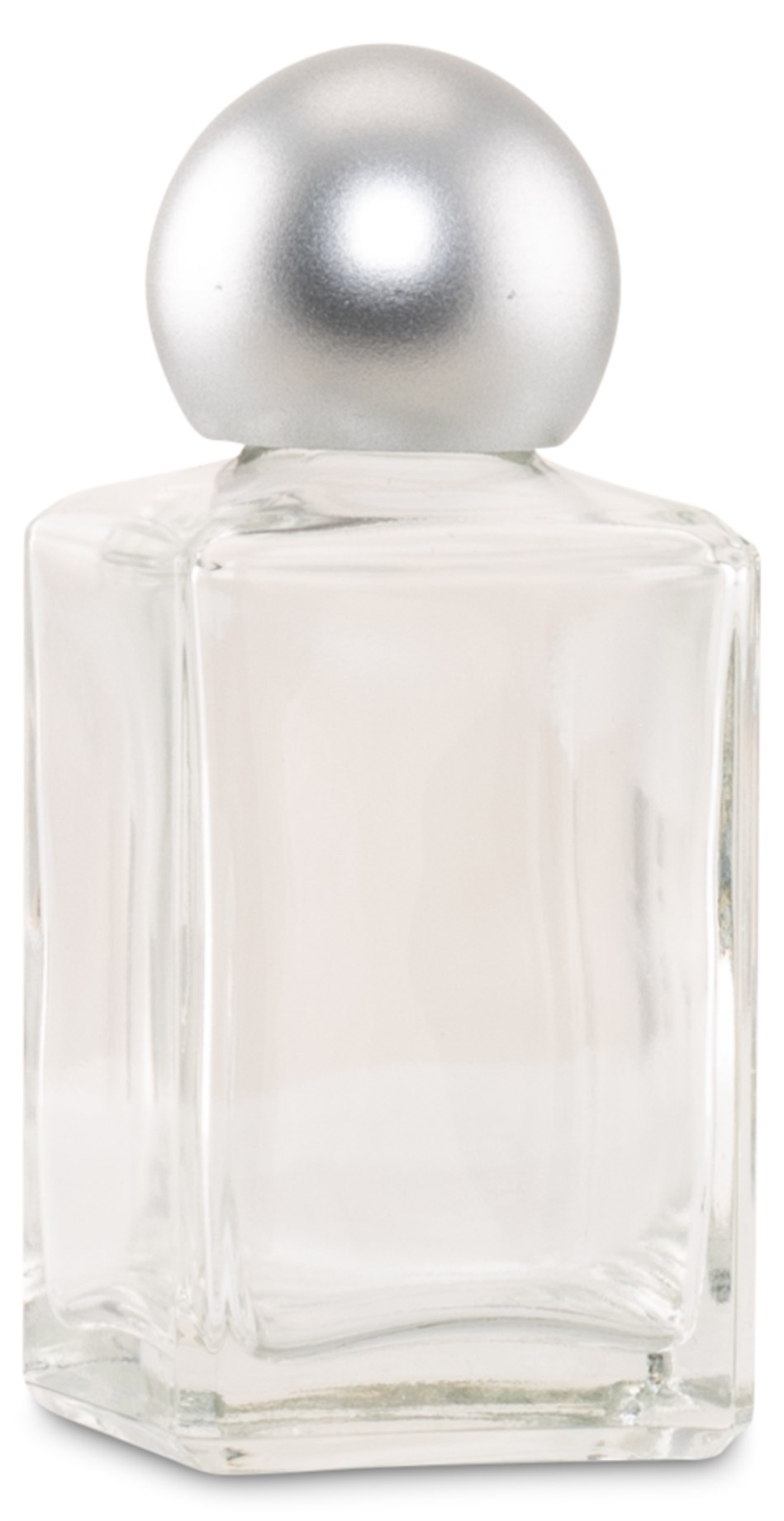 Plejer du at lave dine egne dufte? Crearome Glasflaske Firkantet er en gennemsigtig parfumeflaske i glas med en smuk firkantet form, som du kan opbevare dine dufte i. Rund kapsel i sølvfarve medfølger.