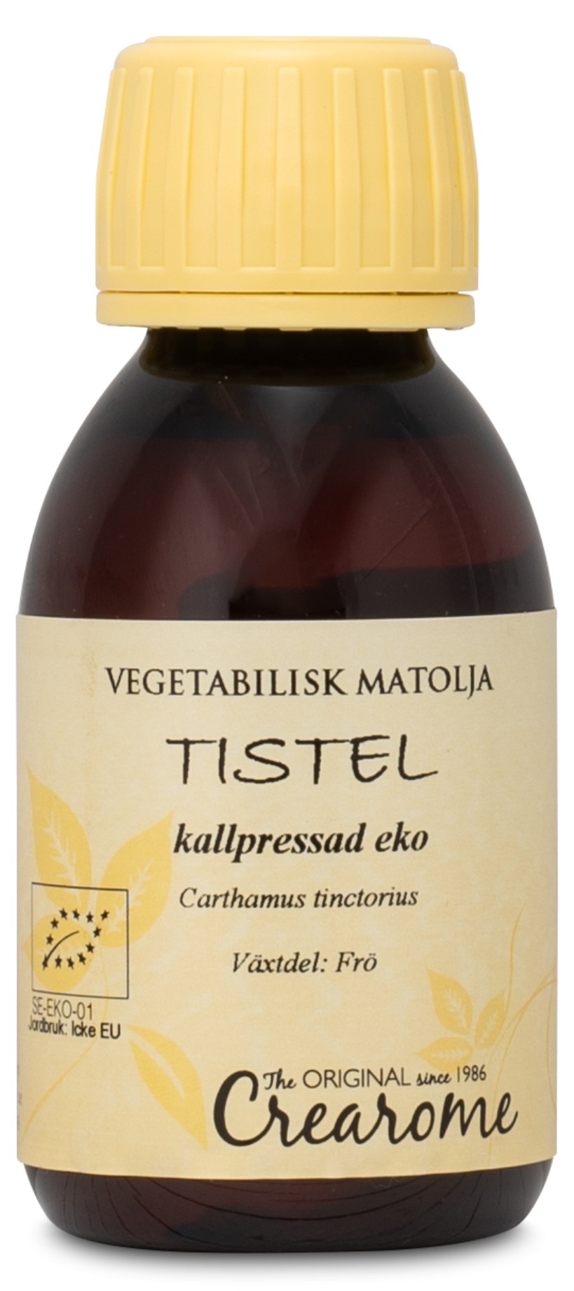 Crearome Koldpresset Tidselolie ØKO er en olie til både hudpleje og madlavning. Økologisk og koldpresset med en let og tør fornemmelse, der hurtigt absorberes i huden uden at fedte. Særlig velegnet til fedtet hud og kan bruges som ansigtsolie, massageolie eller i håret. Med sin milde og nøddeagtige karakter passer den perfekt i køkkenet, for eksempel som dressing på salat. Tidselolie er den vegetabilske olie, der indeholder mest af den essentielle omega-6-fedtsyre linolsyre (80 %).