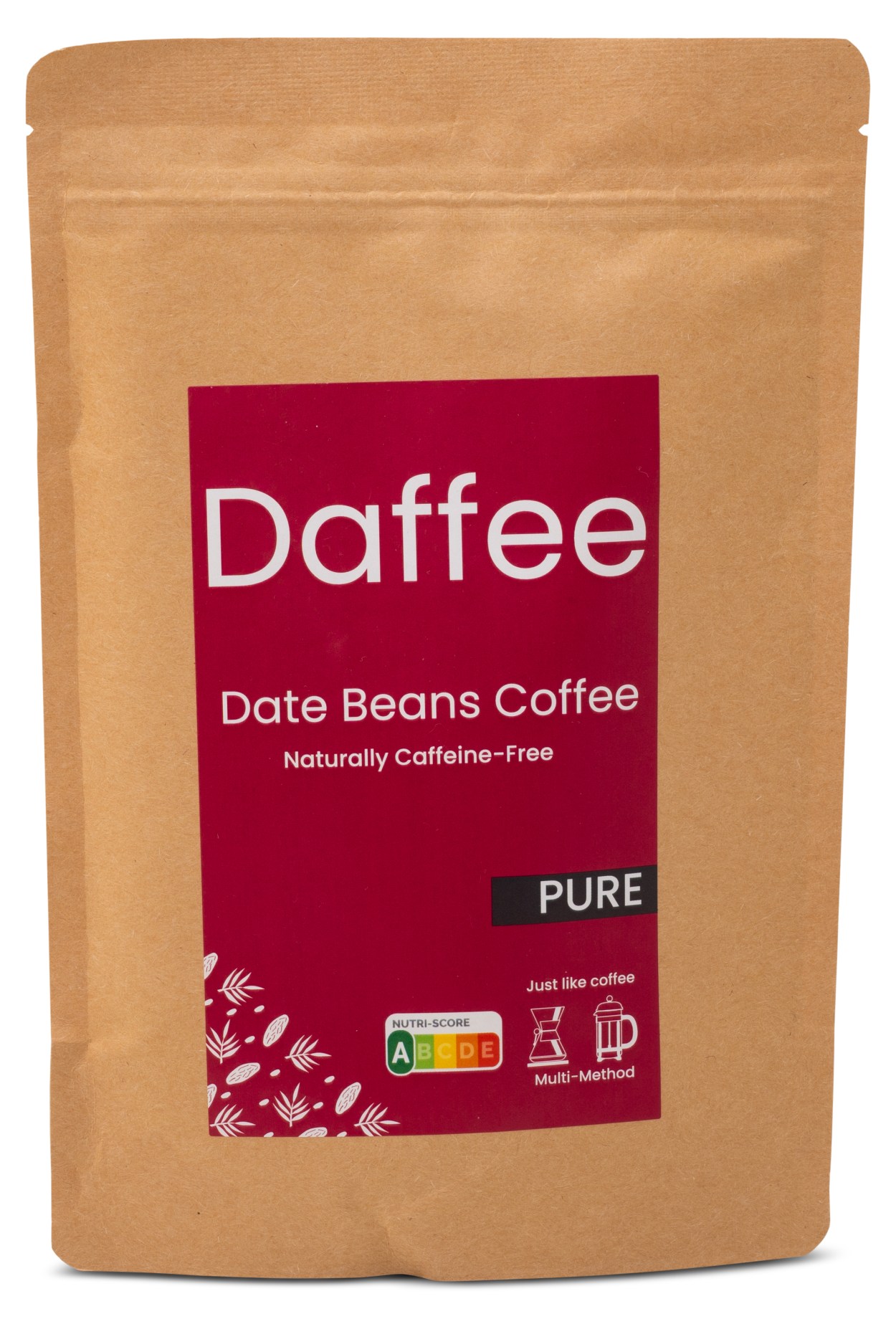 Koffeinfri Daddelkaffe fra Daffee er en helt koffeinfri kaffe lavet på ristede og malede økologiske daddelkerner. Kaffe lavet på dadler giver en smagsrig og aromatisk kaffe, som brygges ligesom almindelig kaffe. Daddelkaffen er desuden naturligt rig på antioxidanter, jern, fibre og vigtige mineraler. Da kaffen er koffeinfri, behøver du ikke bekymre dig om at få problemer med søvnen, så du kan nyde en god kop kaffe når som helst.