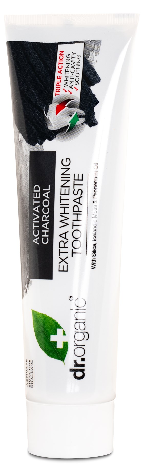 Dr Organic Tandpasta Aktivt Kul renser og beskytter dine tænder med aktivt kul, en unik ingrediens, der ofte bruges til rengøring og blegning. Aktivt kul anvendes i hudplejeprodukter på grund af dets rensende, gavnlige og absorberende effekt. Med en velkomponeret blanding af bioaktive, naturlige og økologiske planteekstrakter har Dr Organic fremstillet en rensende tandpasta med aktivt kul fra bæredygtigt dyrket egetræ, som både beskytter og renser dine tænder. Tandpastaen indeholder fluor.