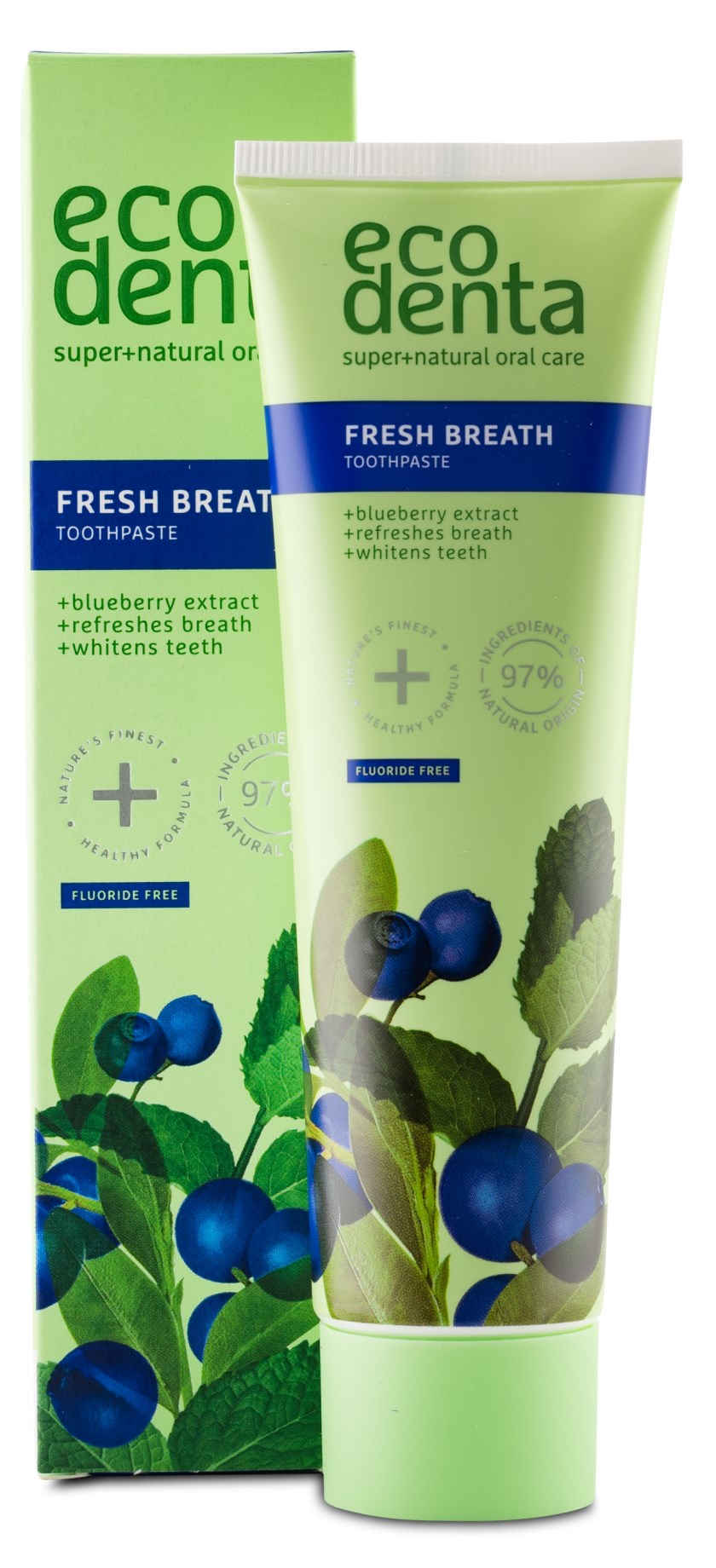 Ecodenta Expert Line Fresh Breath Toothpaste er en tandpasta til dig, der ønsker en langvarig frisk ånde! Formlen indeholder naturligt blåbærekstrakt, som både frisker op og holder munden ren med sine antibakterielle egenskaber. Rengør effektivt, fjerner plak og forebygger karies. Tandpastaen er velegnet til hele familien!