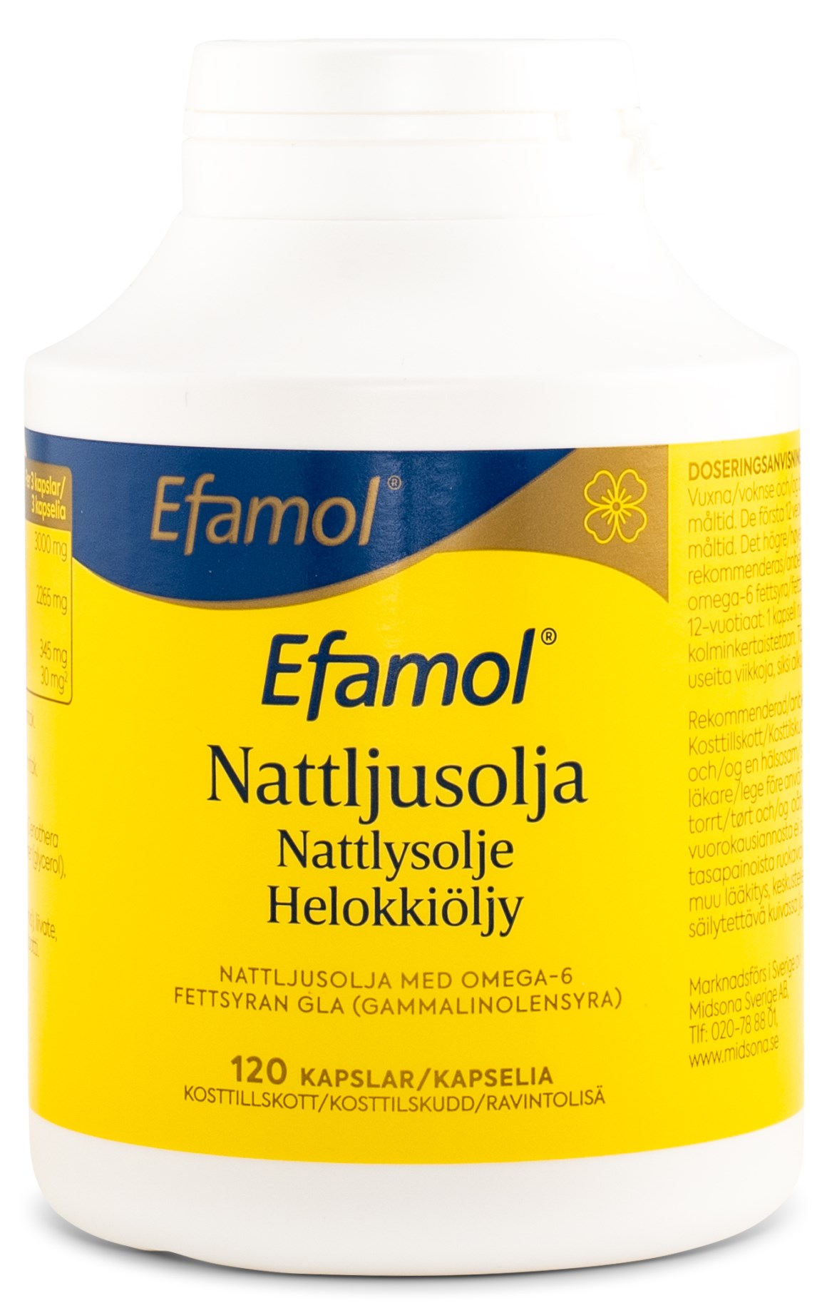 Efamol er fremstillet af kæmpenatlysolie som indeholder essentielle omega-6 fedtsyrer, og er især rig på GLA (gammalinolensyra.)