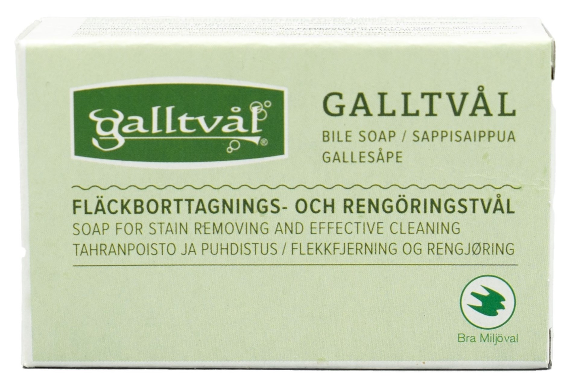 Med Galltvål Fast får du en effektiv pletfjernelse til pletter fra fedt, frugt og bær, græs, vin og meget mere. Galdesæbe kan bruges på farvede stoffer såvel som til rengøring af cykler, biler, ovne og komfurer. Det naturlige indhold, som er en kombination af oksegalde og økologisk kokosnød og palmeolie, gør Galltvål effektiv til at opløse fedt. Den faste form af galdesæbe er især velegnet til pletter, der kommer fra græs, frugt og grøntsager, fordi det har et naturligt indhold af klorofyl, der er nyttigt mod sådanne pletter. Du kan også bruge Galltvål Flydende, hvis du foretrækker en flydende form for rengøring. Galdesæbe indeholder ingen blegemidler og ingen kemikalier.