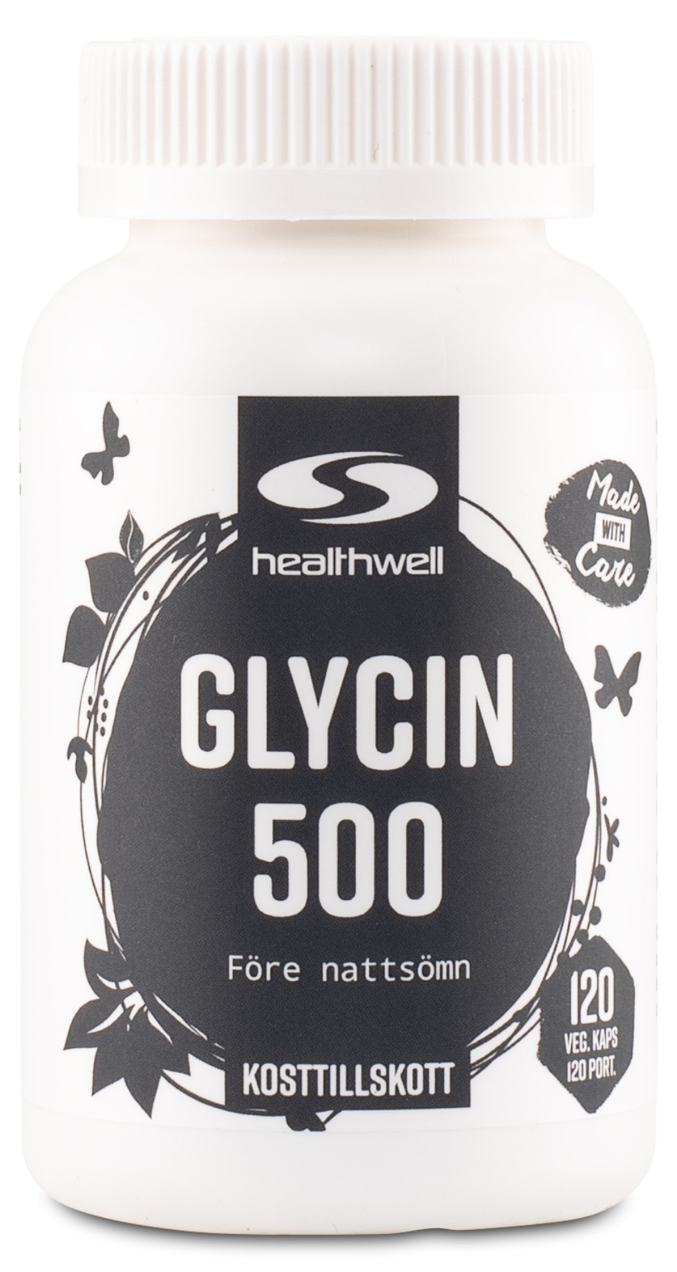 Healthwell Glycin 500 er et kosttilskud af høj kvalitet med den interessante aminosyre glycin i form af L-glycin, som er glycin i fri form, der nemt og hurtigt optages af kroppen. Glycin er en ikke-essentiel aminosyre, der normalt dannes naturligt i kroppen, men i nogle tilfælde kan niveauet af glycin være for lavt. Med Healthwell Glycin 500 kan du sikre dit glycinindtag som et supplement til din kost. Tilskuddet er helt vegetabilsk og kommer i let udvalgte kapsler. Den anbefalede dosis er to kapsler om dagen før sengetid, hvor én dosis giver 1 gram glycin.