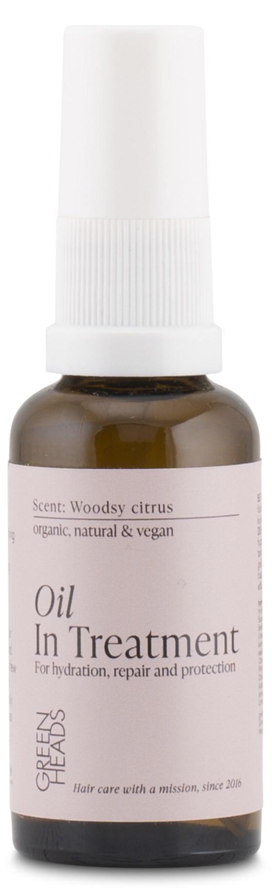 Green Heads Oil in Treatment er en unik blanding af 100% naturlige olier med plejende, fugtgivende og glansgivende egenskaber. Olien indeholder blandt andet arganolie, der fugter, abyssinian olie, der giver glans og glød, broccoliolie, der fungerer som en varmebeskyttelse, samt squalane, der blødgør. Passer til alle hårtyper, og mængden af olie tilpasses nemt efter dit hår. Påfør i vådt hår før føntørring og styling for varmebeskyttelse og for at modvirke krus. Olien kan også påføres i tørt hår for at give håret sin blødhed og glans tilbage. Fantastisk duft af Lemon Spritzer.