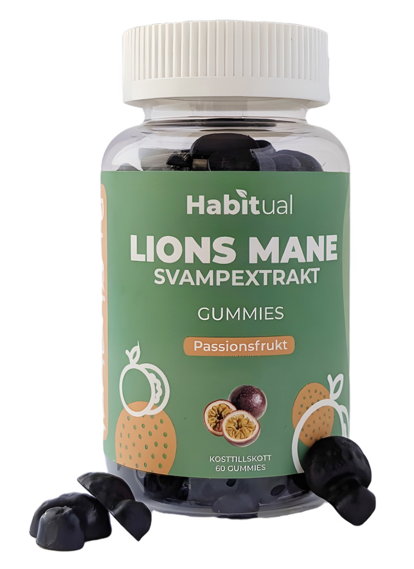Habitual Lion's Mane Gummies Passionsfrugt er et plantebaseret kosttilskud med svampeekstrakt i form af velsmagende gummies. Hver vingummi indeholder ekstrakt af lion's mane-svampen, en svamp med pigge med traditionel anvendelse og et naturligt indhold af antioxidanter. Den tropiske smag af passionsfrugt gør indtaget nemt og lækkert. Produktet er helt vegansk og fri for sukker og gluten.