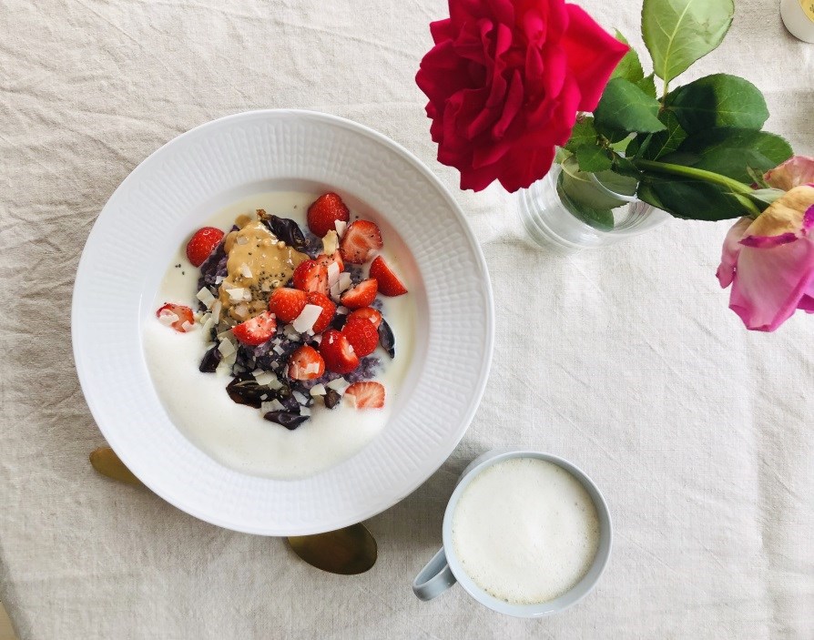 Prøv en mættende opskrift på havregrød med acaipulver, perfekt efter morgentræningen eller inden en lang dag på arbejde. Friske jordbær og sprøde kokosflager sætter prikken over i'et.