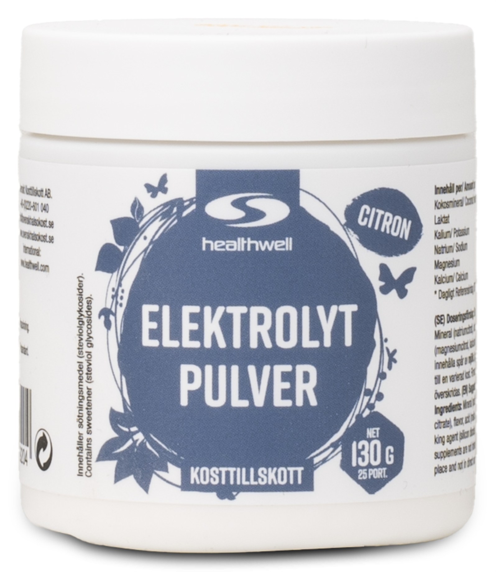 Healthwell Elektrolytpulver er et fremragende alternativ til væskeerstatning for dig, der træner intensivt og i længere perioder, eller på en varm sommerdag. Elektrolytpulver indeholder mineraler, der betragtes som elektrolytter og forbruges hurtigere, når vi er aktive eller sveder meget. At drikke meget vand og tilføje ekstra salt og elektrolytter er en nem måde at genoprette væske- og saltbalancen hurtigt på. Healthwell Elektrolytpulver har desuden en god smag af citron!