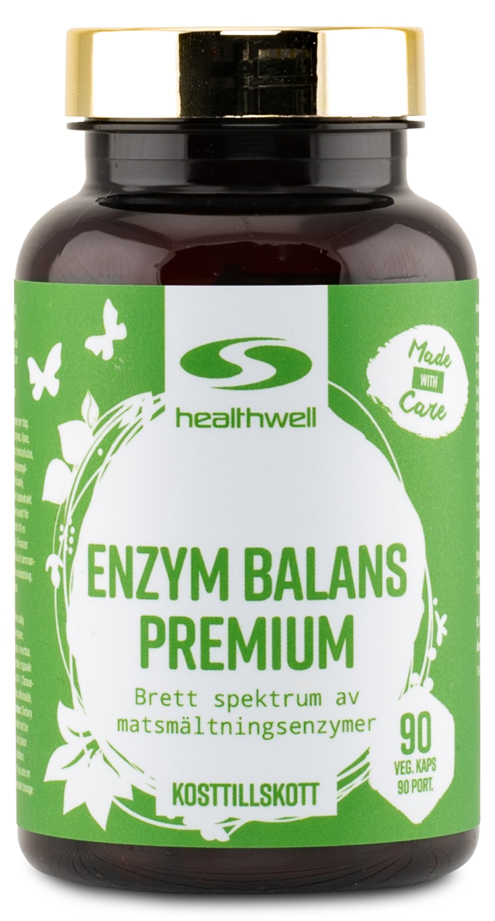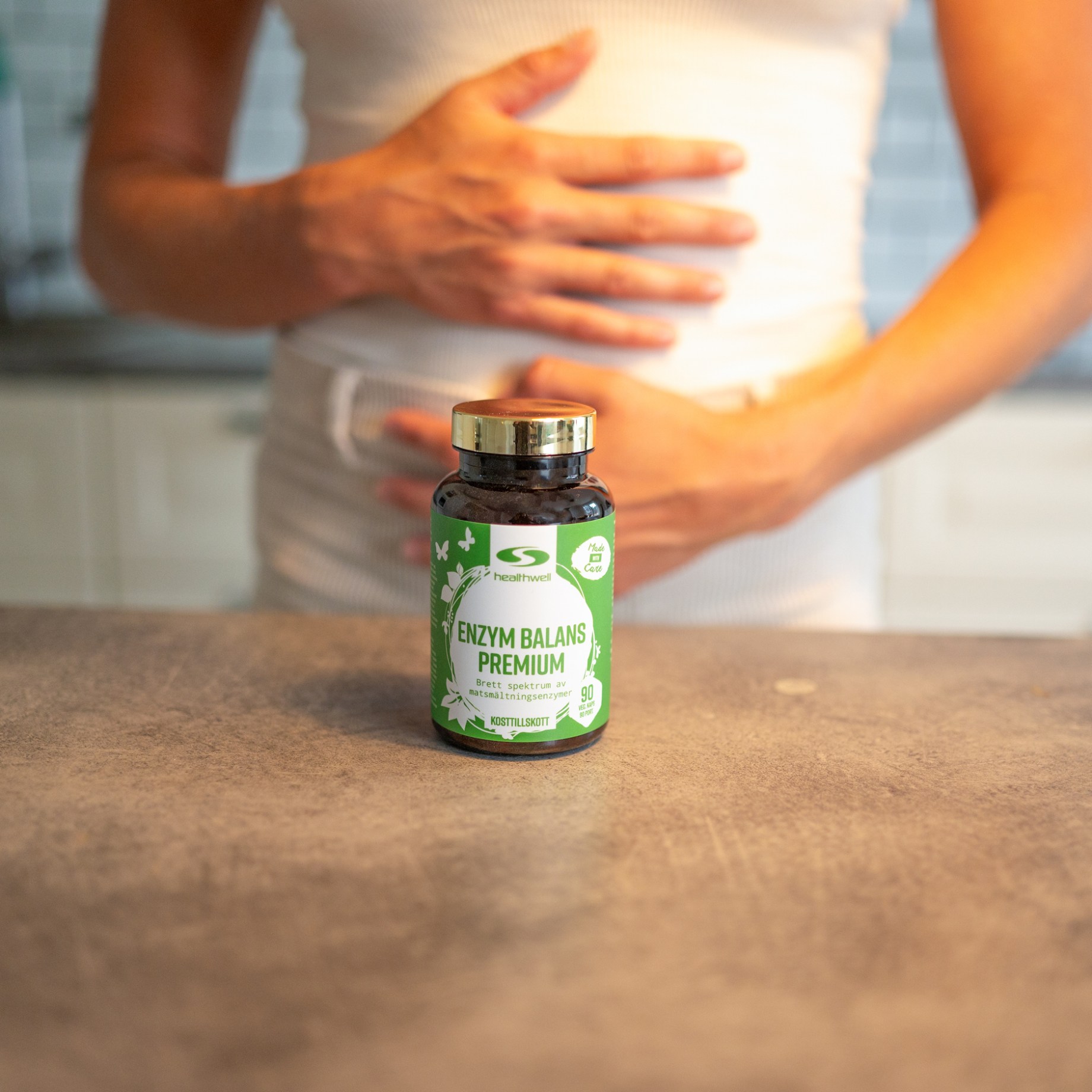 En dårlig fordøjelse kan være kendetegnet ved, at man oplever maven som oppustet, at man har dårligere næringsabsorption eller problemer med gas. Det kan så skyldes mangel på et eller flere enzymer eller en ubalanceret tarmflora. For at støtte kroppens fordøjelse kan man tage kosttilskud med enzymer og med fordel kombinere med mælkesyrebakterier for tarmfloraen. Healthwell Enzym Balance Premium indeholder et bredt spektrum af fordøjelsesenzymer i en ekstra høj dosis for at passe til dig med en varieret kost, som ønsker at støtte fordøjelsen og effektivt optage næringsstoffer på den bedst mulige måde. Enzymerne nedbryder protein, fedt, kulhydrater, lactose, sukker og ufordøjeligt cellulose i grøntsager og giver dig de bedste forudsætninger for en normalt fungerende fordøjelse.