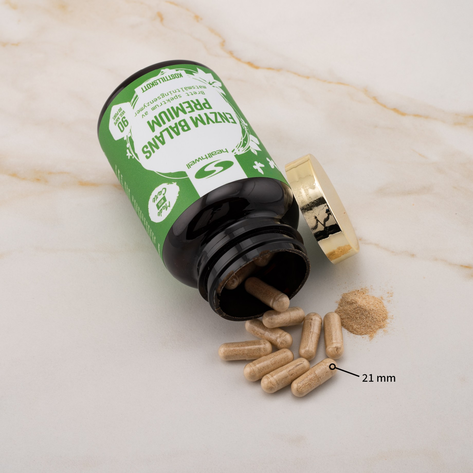 Enzymer er proteiner, og har en vigtig rolle i vores fordøjelse, hvor enzymerne nedbryder og omsætter mad til mindre komponenter, der lettere optages af kroppen. Det giver os mulighed for at tilgodese de næringsstoffer, som vores krop har brug for, såsom kulhydrater, fedt, protein, men også vitaminer og mineraler. Healthwell Enzym Balance Premium tages fortrinsvis før et måltid, for straks at tilføje enzymer, der støtter fordøjelsen. Nogle af enzymerne i Healthwell Enzym Balance Premium er:
