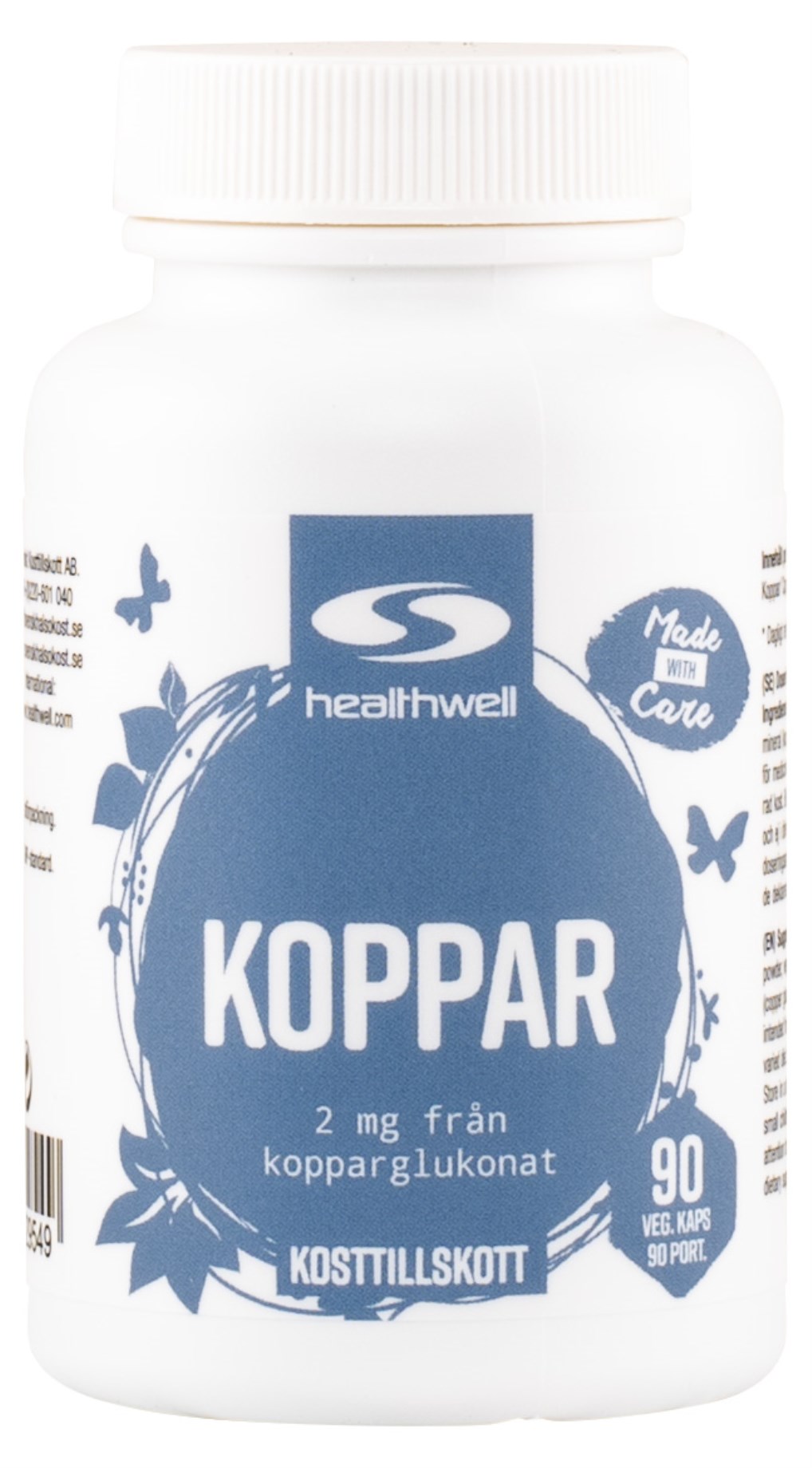 Healthwell Kobber indeholder det vigtige mineral kobber i en chelateret form med høj biotilgængelighed - kobberglukonat. En kapsel indeholder 2 mg kobber for at sikre indtaget af dette vigtige mineral. Kobber har flere interessante funktioner i kroppen, blandt andet bidrager det til nervesystemets og immunforsvarets normale funktion samt til jerntransporten. Desuden bidrager det også til hudens og hårets normale pigmentering, samtidig med at det beskytter kroppens celler mod oxidativ stress.