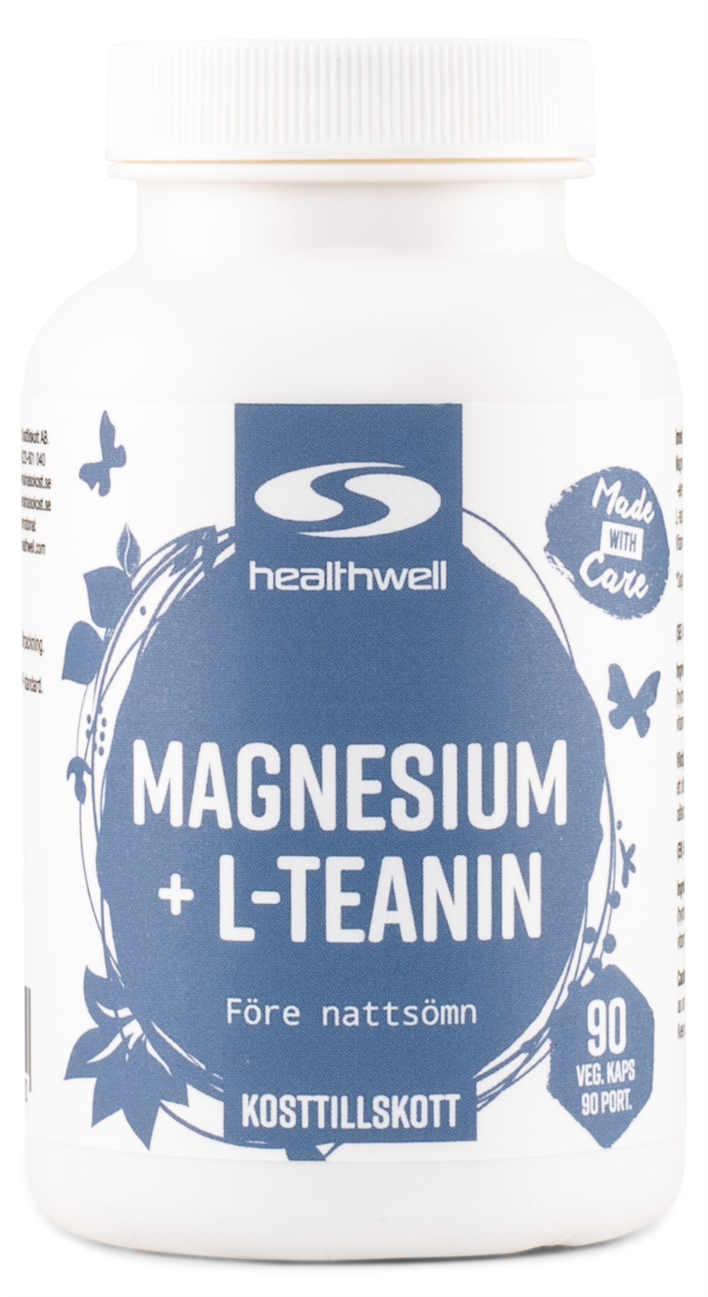 Healthwell Magnesium+L-teanin indeholder mineralet magnesium i to forskellige former; citrat og bisglycinat. Mineralet bidrager til normal muskelfunktion og nervesystemets normale funktion. Magnesium tages ofte efter hård træning eller om aftenen for dets muskelafslappende egenskaber. L-teanin er en aminosyre, som i modsætning til de fleste aminosyrer ikke er proteindannende, men har selvfølgelig andre effekter. L-teanin forventes blandt andet at hjælpe i processen med at frigive neurotransmitterne serotonin og dopamin i kroppen, hvilket påvirker vores humør og vores belønningssystem.