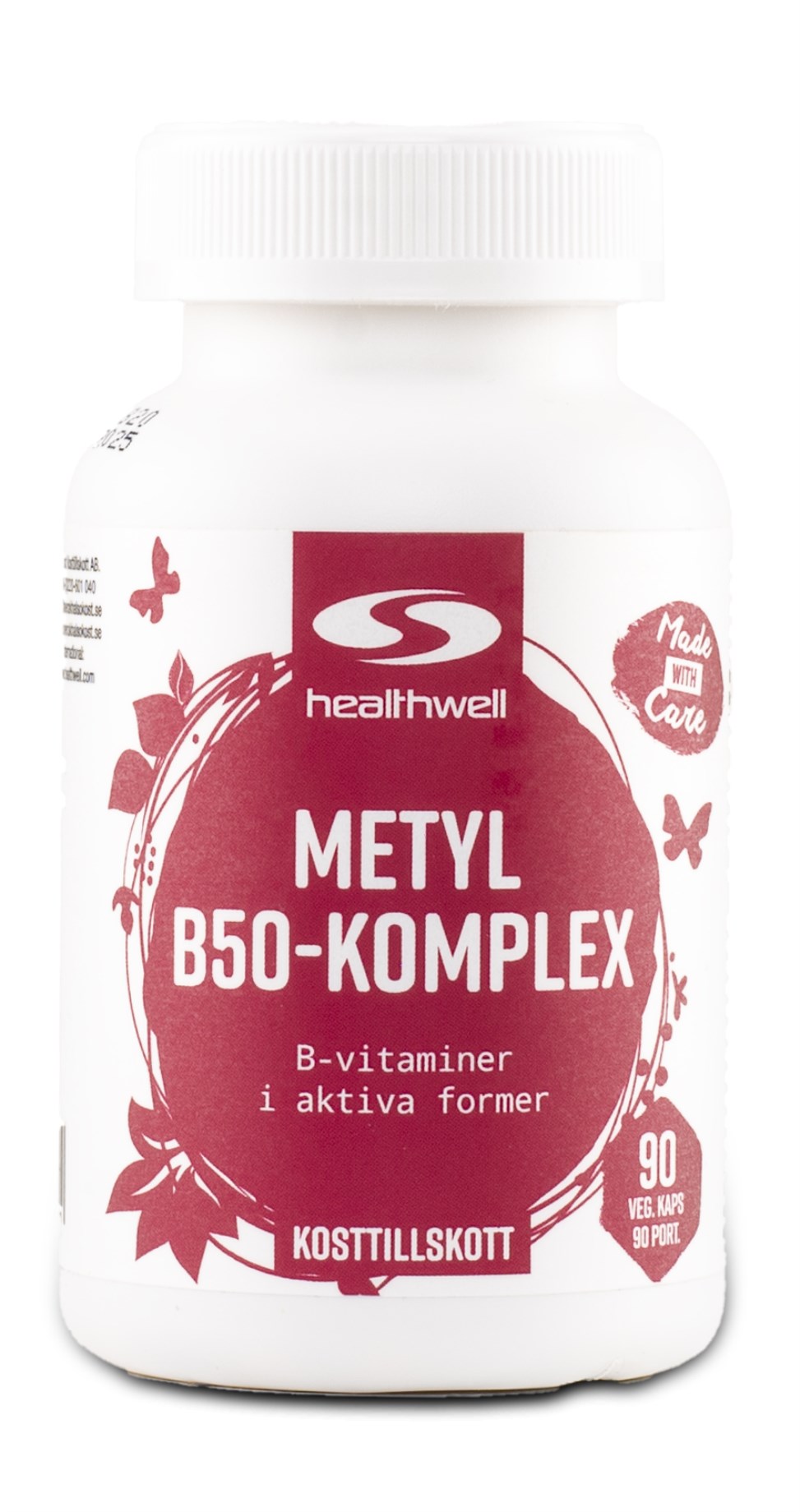 Methyl B50-Kompleks er et komplet kosttilskud med alle B-vitaminer i vegetabilske kapsler. Tilskuddet indeholder blandt andet de vigtige vitaminer B6, B12 og folinsyre i methyleret form. At de er methylerede betyder, at de allerede er i deres aktive former og klar til at blive optaget af kroppen. Dette giver rigtig god optagelse og effekt, og er især gavnligt for personer med nedsat methyleringsfunktion, altså evnen til at omdanne vitaminer til aktive former. Med Healthwell Methyl B50-Kompleks får du alt, hvad du behøver i et glat tilskud uden at skulle supplere med andre B-vitaminprodukter. Doseringen er kun 1 kapsel dagligt!