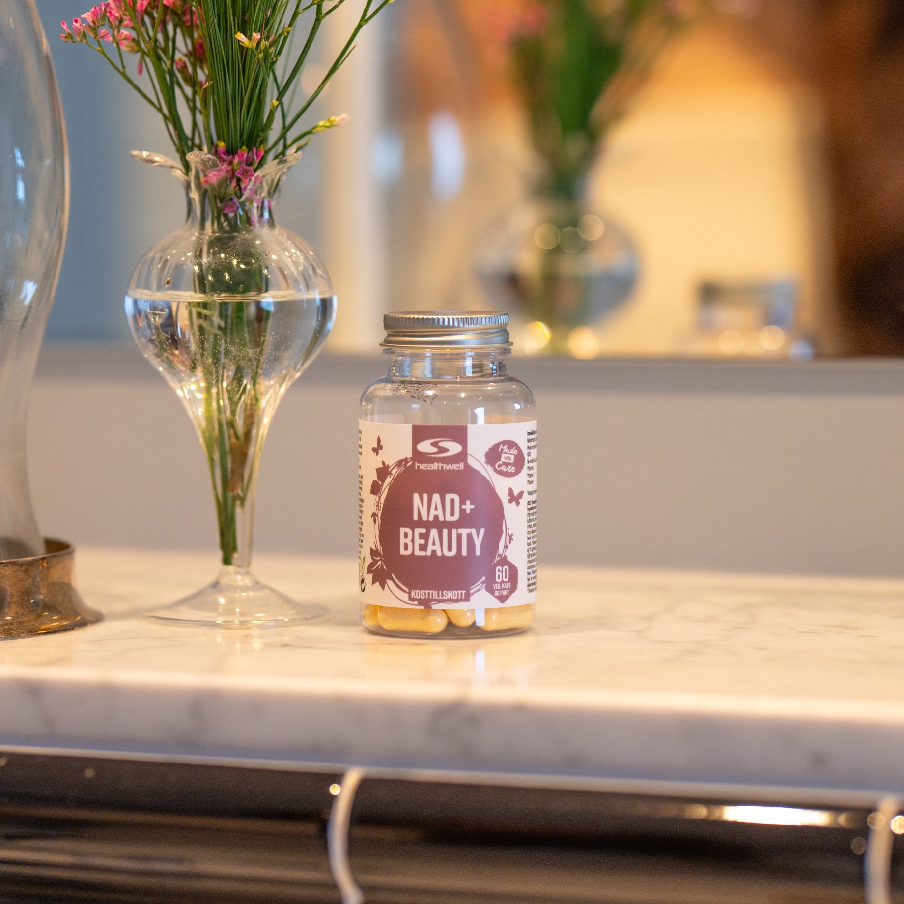 Healthwell NAD+ Beauty er et kosttilskud med ingredienser, der fremmer normale niveauer af NAD+, specielt sammensat til dig, der ønsker at tage vare på dig selv både indeni og udenpå. Denne formel indeholder det omtalte stof nicotinamid ribosidchlorid, som bidrager til niveauerne af NAD+ i kroppen, sammen med NAC, hyaluronsyre, Q10 og nøje udvalgte antioxidanter. Perfekt som en del af din daglige skønhedsrutine.