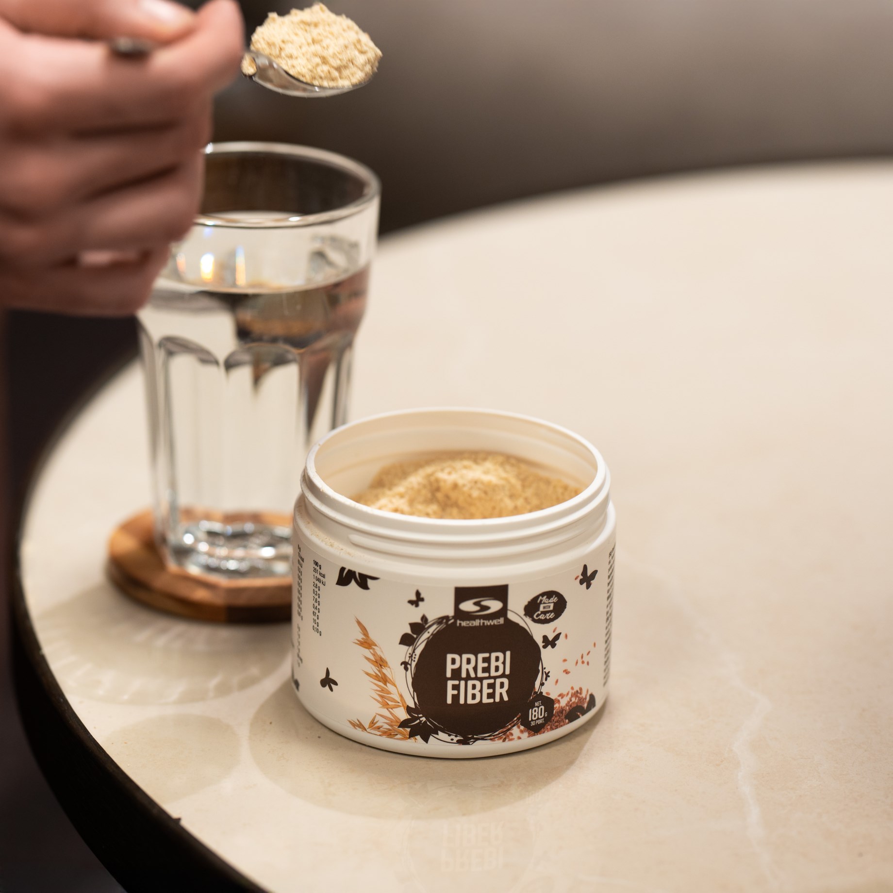 PrebiFiber fra Healthwell er et tilskud med fibre i pulverform, med flere forskellige fibertyper, der alle fungerer som prebiotiske fibre til tarmbakterierne. Fibrene i PrebiFiber danner gel og giver en god mæthedsfornemmelse, hvilket er fremragende for dem, der ønsker at øge deres fiberindtag og holde blodsukkeret på et jævnt niveau. De prebiotiske fibre i PrebiFiber består af en base af psylliumfrøskaller sammen med blandt andet havrefibre og glucomannan.