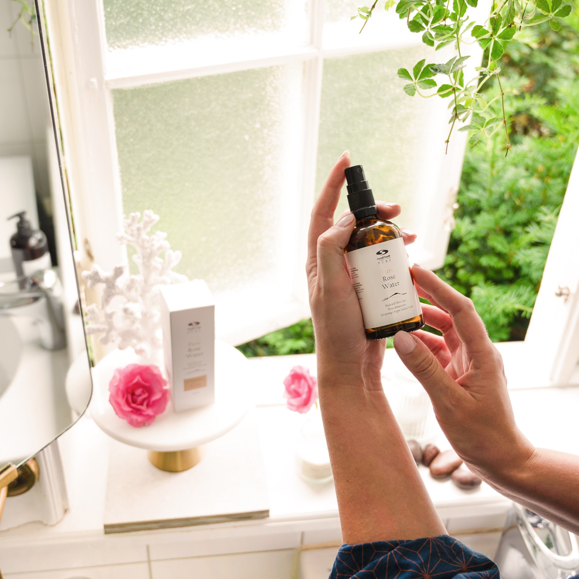 - Fugtgivende toner til huden: Spray direkte på ansigtet og lad det trænge ind for en opfriskende og fugtgivende følelse. Rosenvand hjælper med at berolige og blødgøre huden efter rensning.