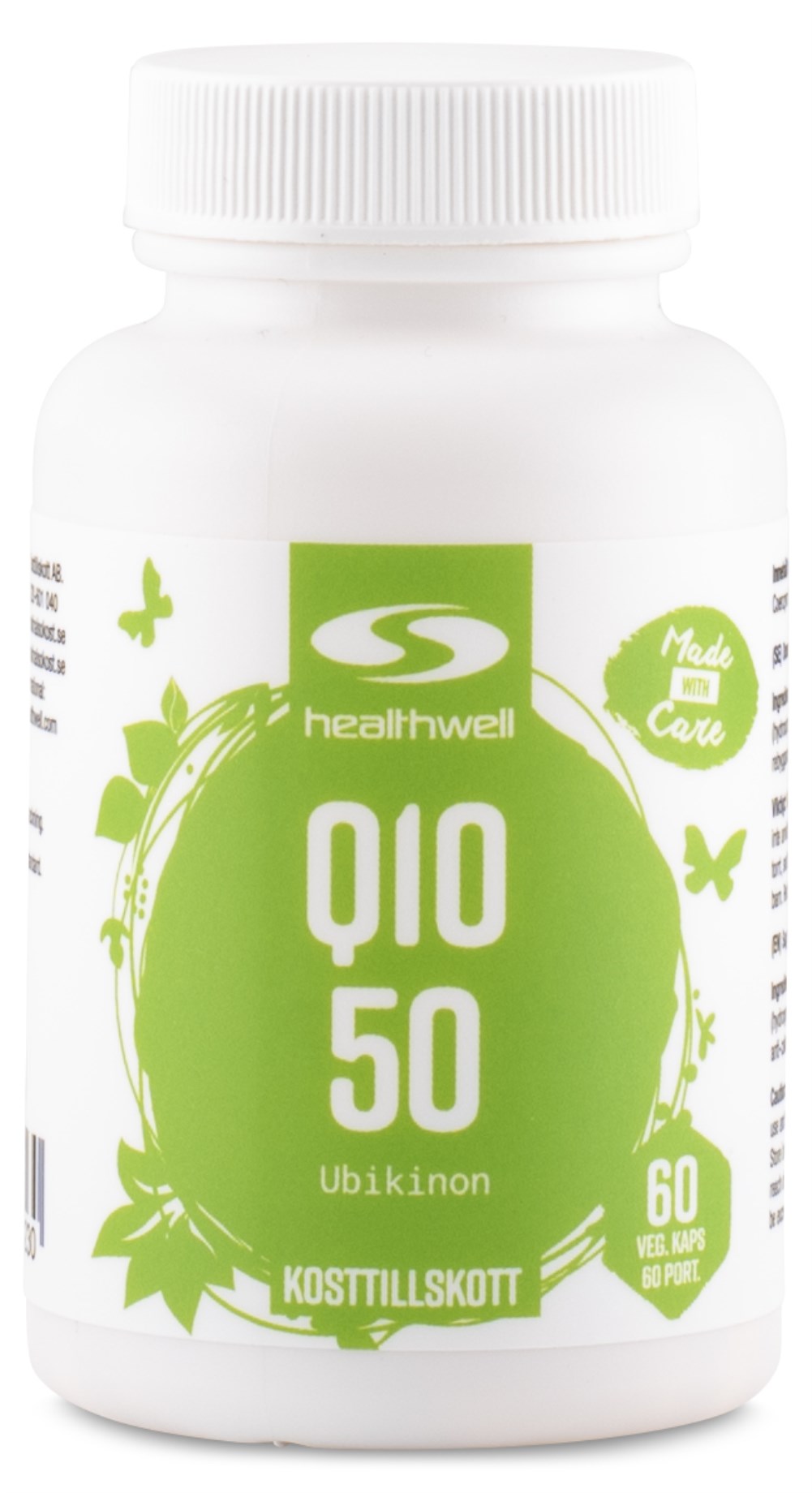 Healthwell Q10 50 består af Q10, som svarer til den Q10, der findes i kroppen. Stoffet er et vitaminlignende stof, der findes naturligt i vores celler. Det er et stof, som kroppen selv kan danne, og som hovedsageligt produceres i leveren. I mangel af Q10 kan der opstå en følelse af træthed og mangel på energi. Q10-produktionen falder med alderen, og derfor er Q10 et populært kosttilskud. Q10 tog fart som kosttilskud i løbet af 1990'erne, og der laves løbende undersøgelser af dets virkning for at undersøge, hvilken betydning det har for vores krop. Q10 er et fedtopløseligt stof, som er let for kroppen at optage og assimilere.