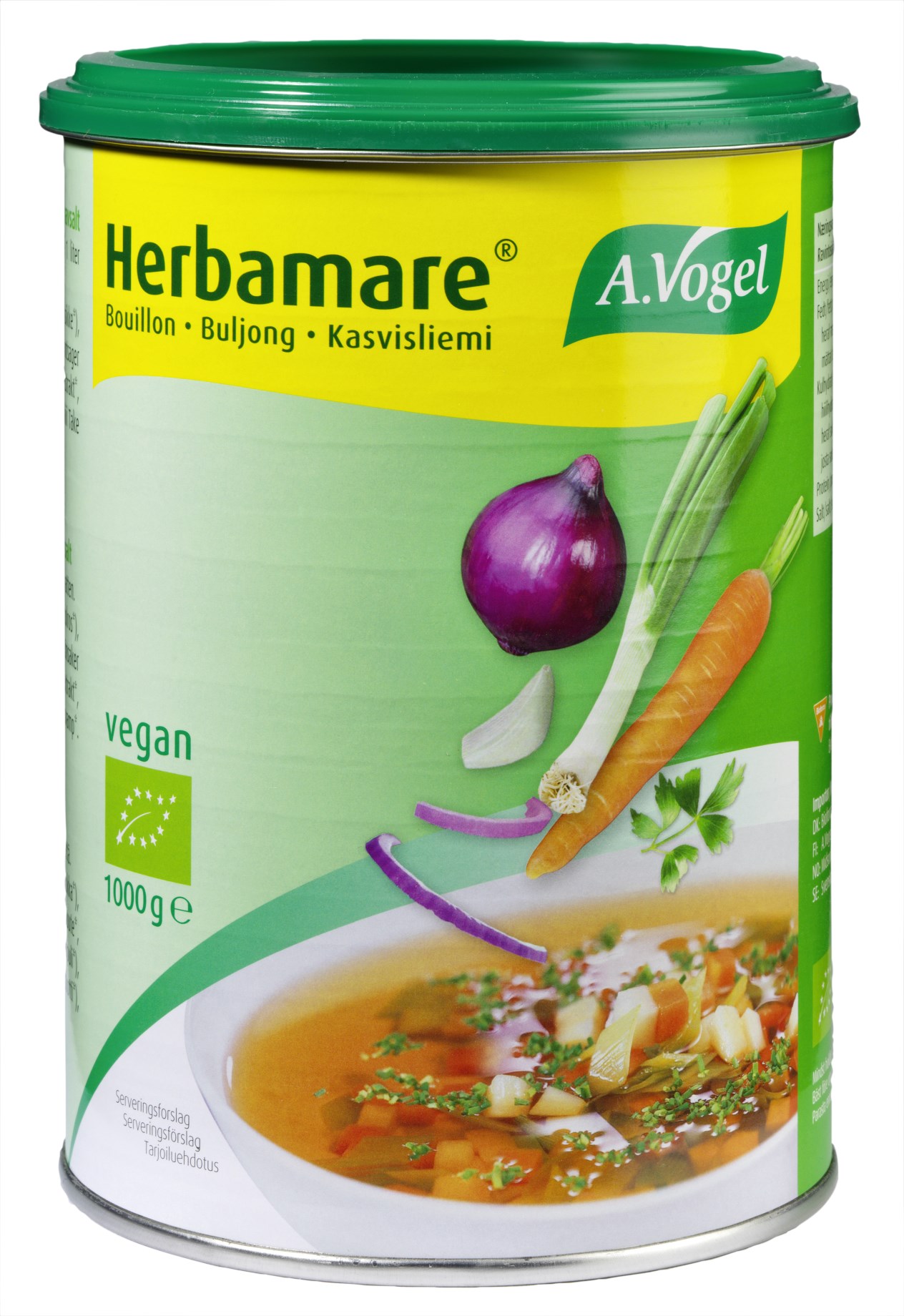 Herbamare Urtebouillon er et bouillonkoncentrat, fuldstændig vegetabilsk og uden konserveringsmidler. Det giver en god smag til supper og saucer eller som en varmende drik. Urtebouillonen findes også i en saltfattig variant.