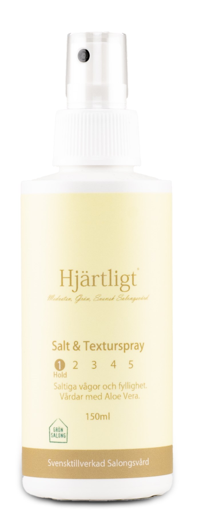 Hjärtligt Salt- og teksturspray giver dit hår tekstur og fylde samt en følelse af at håret har været dyppet i saltvand, hvilket giver hold og volumen. Ricinusolie nærer og giver glans, mens aloe vera blødgør og nærer håret og hovedbunden. Kan bruges i både fugtigt og tørt hår.