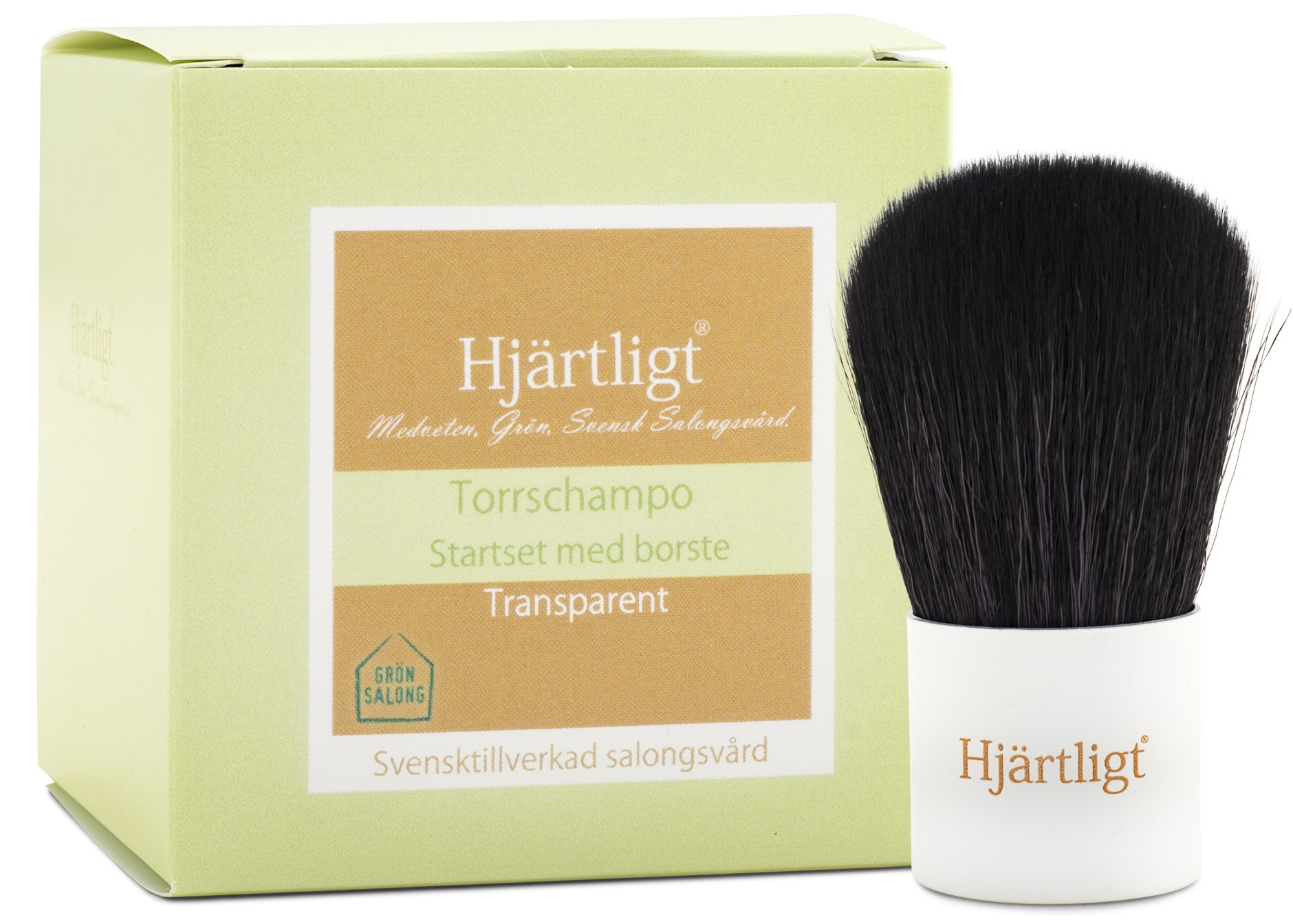 Hjärtligt Tørshampoo + Børste er et startkit, der indeholder Hjärtligt Tørshampoo og en tilhørende Hjärtligt Tørshampoo Børste. Denne tørshampoo giver dig en glat og hurtig forfriskning af håret ved at absorbere fedt og tilføre håret ekstra volumen. Tørsshampooen er velegnet til alle hårtyper, selv til en følsom hovedbund. Shampooen er 100% plantebaseret, uden skadelige kemikalier og parfume og er mærket med Grøn Salon, der indikerer at produktet er miljøvenligt.