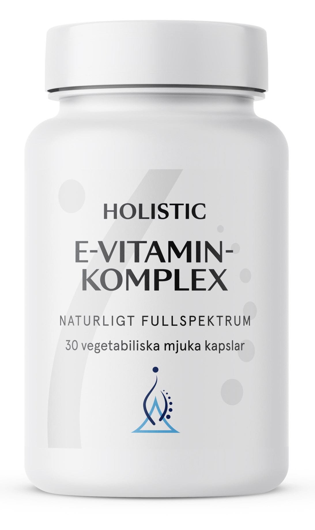 E-vitaminkomplex fra Holistic indeholder det fulde spektrum af E-vitamin, der naturligt findes i E-vitaminrige planter. Det betyder, at dette alfa-tokoferol produkt også indeholder beta-, gamma- og delta-tokoferol. E-vitamin fungerer som en antioxidant i kroppen og kan således hjælpe med at beskytte kroppens celler mod oxidativ stress.