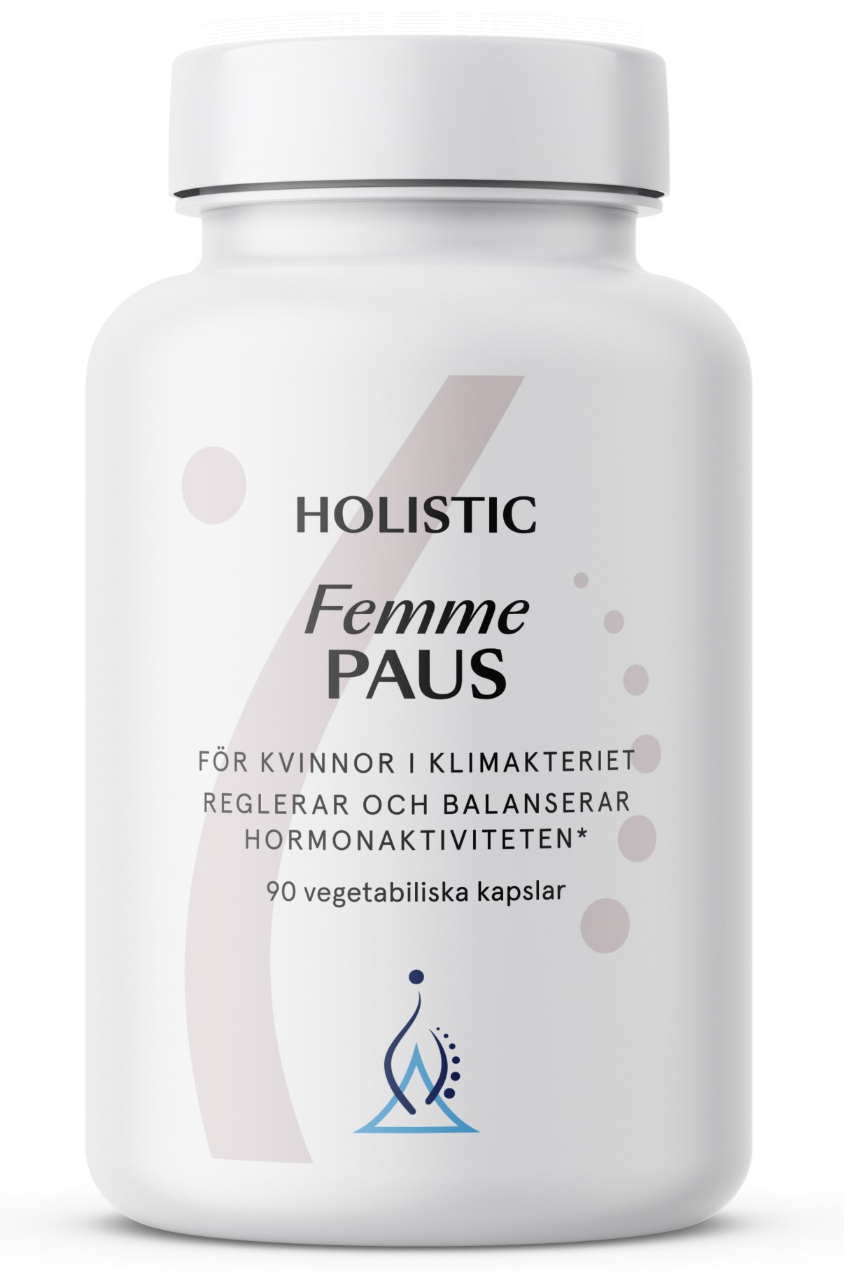 Holistic Femme Paus er et kosttilskud specielt udviklet til kvinder i overgangsalderen og indeholder blandt andet vitamin B6, magnesium og zink. Vitamin B6 hjælper med at regulere hormonaktiviteten, magnesium hjælper med at mindske træthed og udmattelse og zink bidrager til at opretholde en normal benstyrke, hår, hud og negle samt bidrager til hormonel balance. Sammen med rødkløverekstrakt og humleekstrakt understøtter de en rolig overgangsalder.