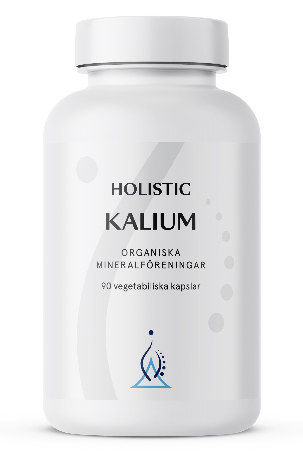Holistics kaliumtilskud indeholder organiske mineralforbindelser, hvilket betyder, at kroppen nemt kan optage det, og kaliummængden derfor ikke behøver at være lige så stor som ellers. Kaliumkapslerne er helt vegetabilske og indeholder fedtsyrer fra kokosolie.
